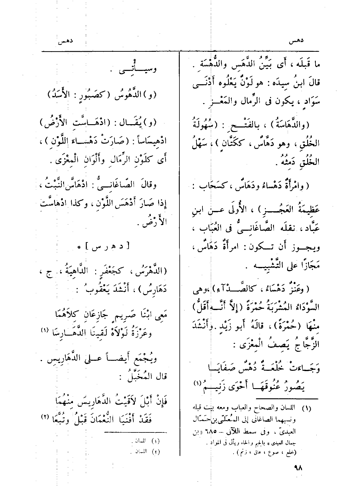 مَا قَبلَه، أَي بَيِّيُ الدَّهَسِ والدُّهْسَةِ.