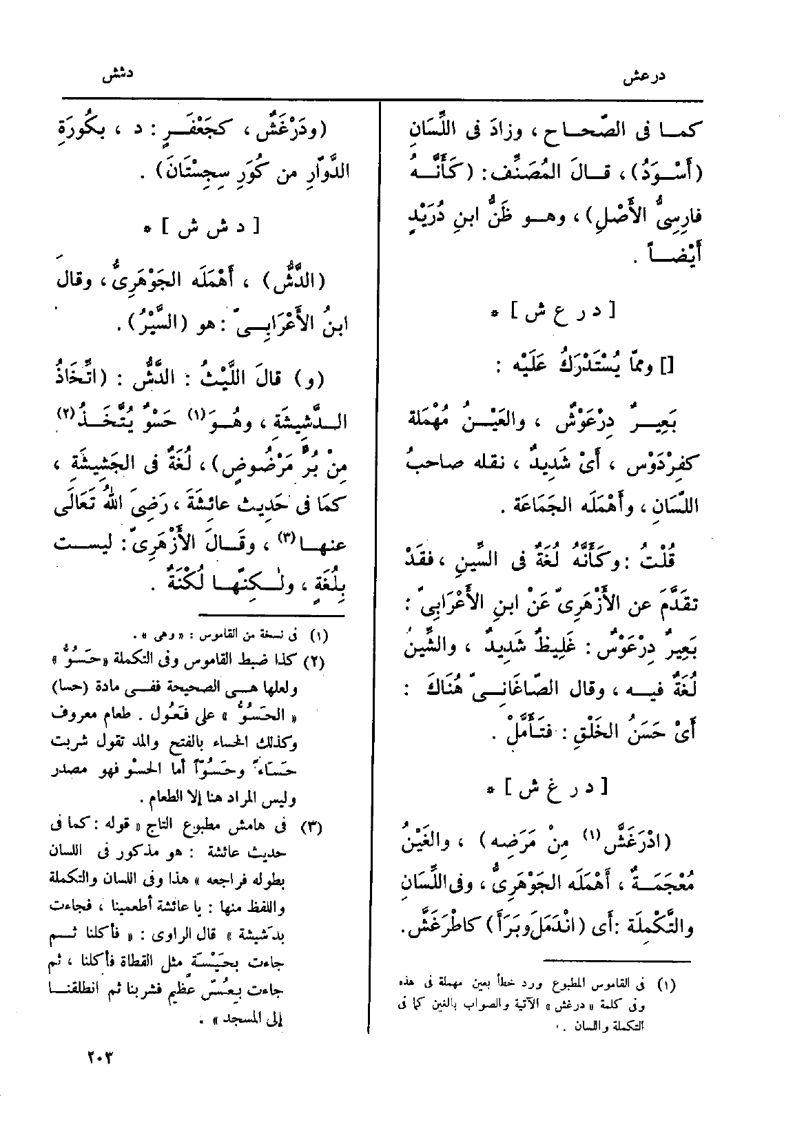 . ادْرَغَشَّ مِنْ مَرَضِه، والغَيْنُ مُعجَمَةٌ، أَهْمَلَه الجَوْهَرِيُّ، وَفِي اللِّسَانِ والتَّكْمِلَة: أَي انْدَمَلَ وبَرَأَ كاطْرَغَشَّ. ودَرْغَشٌ، كجَعْفَرٍ: د، بكُورَةِ الدَّوّارِ من كُورِ سِجِسْتَانَ.