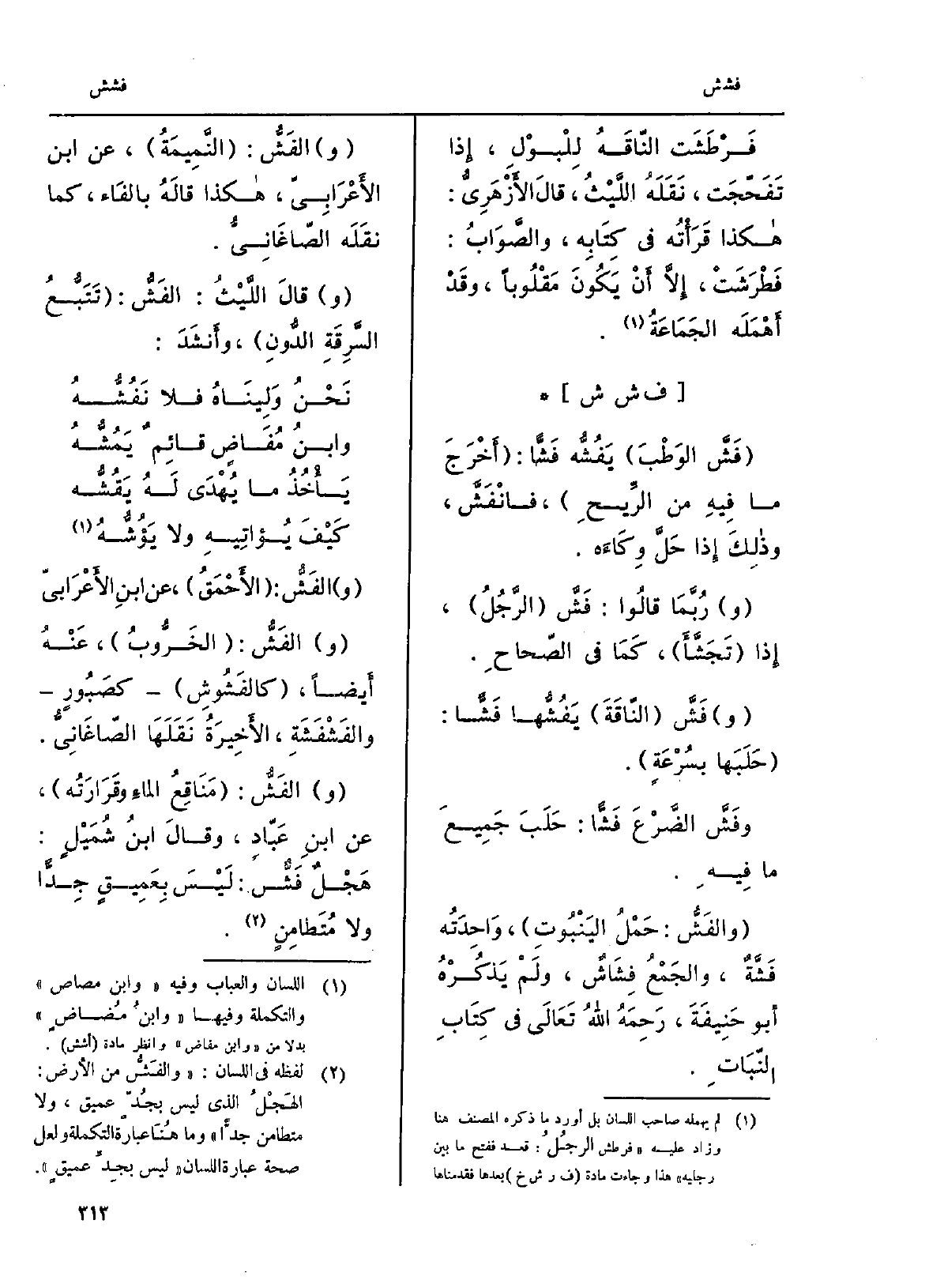 و {الفَشُّ: الأَحْمَقُ، عَن ابنِ الأَعْرَابيّ والفَشُّ: الخَرُّوبُ، عَنْهُ أَيضاً،} كالفَشُوشِ كصَبُورٍ {والفَشْفَشَةِ، الأَخِيرَةُ نَقَلَهَا الصّاغَانِيُّ. و} الفَشُّ: مَنَاقِعُ الماءِ وقَرَارَتُه، عَن ابنِ عَبّادٍ، وقالَ ابنُ شُمَيْلٍ: هَجْلٌ! فَشٌّ: لَيْسَ بِعَيِمقٍ جِدّاً وَلَا مُتَطامِنٍ.