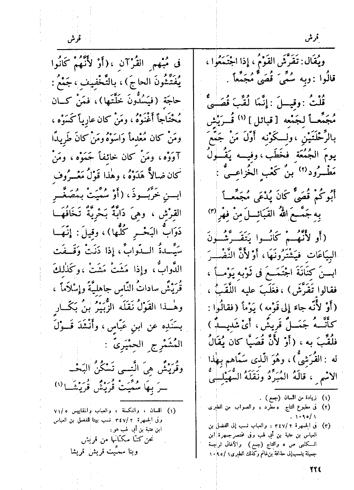 ويُقَال تَقَرَّشَ القَوْمُ، إِذا اجْتَمَعُوا، قالُوا: وبِه سُمِّيَ قُصَيٌّ مُجَمِّعاً. قُلْتُ: وقِيلَ: إِنَّمَا لُقِّبَ قُصَيٌّ مُجَمِّعاً لِجَمْعِه قبائل قُرَيْشٍ بالرِّحْلَتَيْنِ، ولِكَوْنِه أَوّلَ مَنْ جَمّعَ يومَ الجُمُعَةِ فخَطَب، وفِيه يَقُولُ مَطْرُود بنُ كَعْبٍ الخُزاعِيُّ: