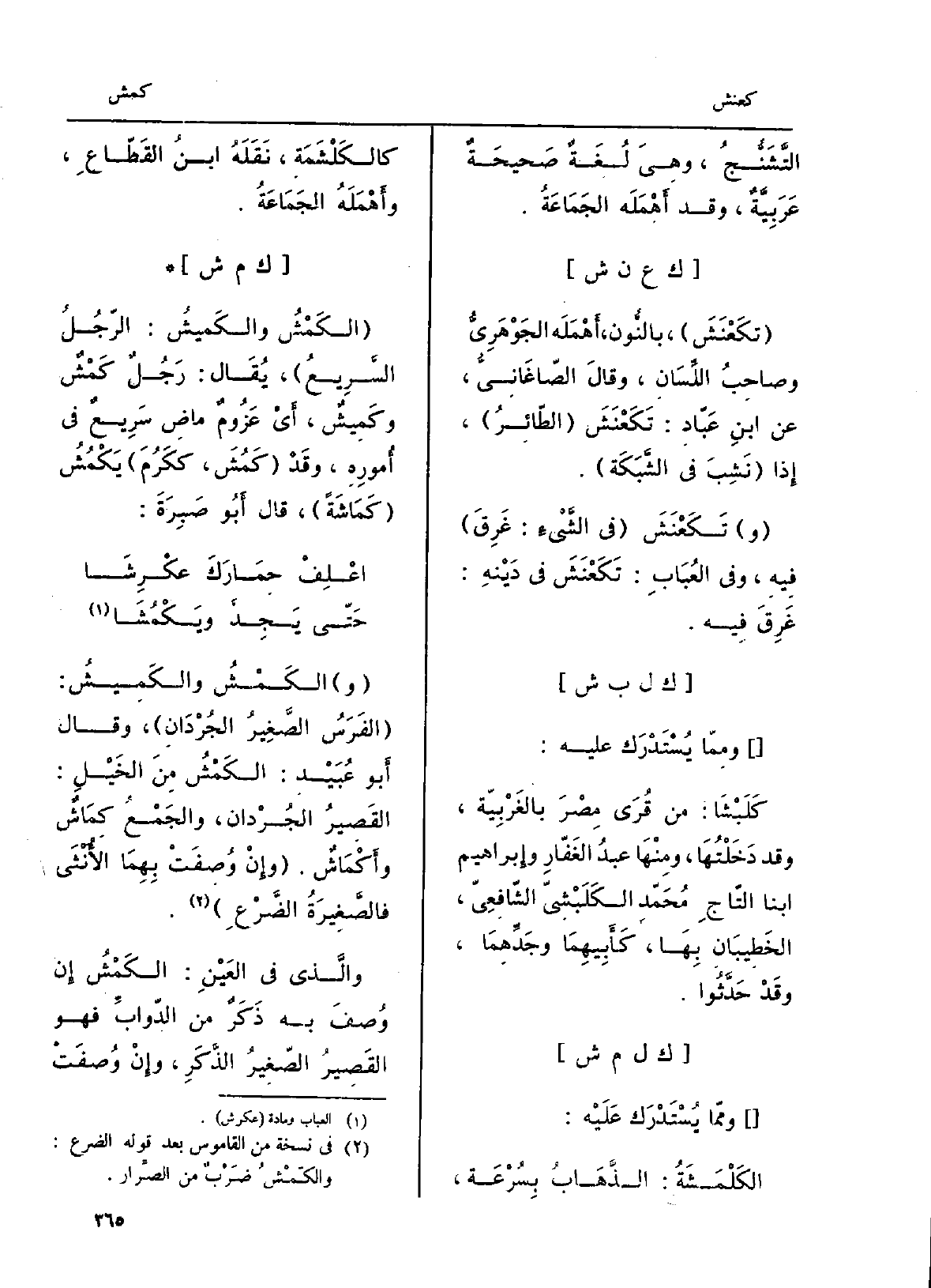 . وممّا يُسْتَدْرَك عَلَيْه: الكَلْمَشَةُ: الذَّهَابُ بِسُرْعَةٍ، كالكَلْشَمَةِ، نَقَلَهُ ابنُ القَطّاعِ، وأَهْمَلَهُ الجَمَاعَةُ.