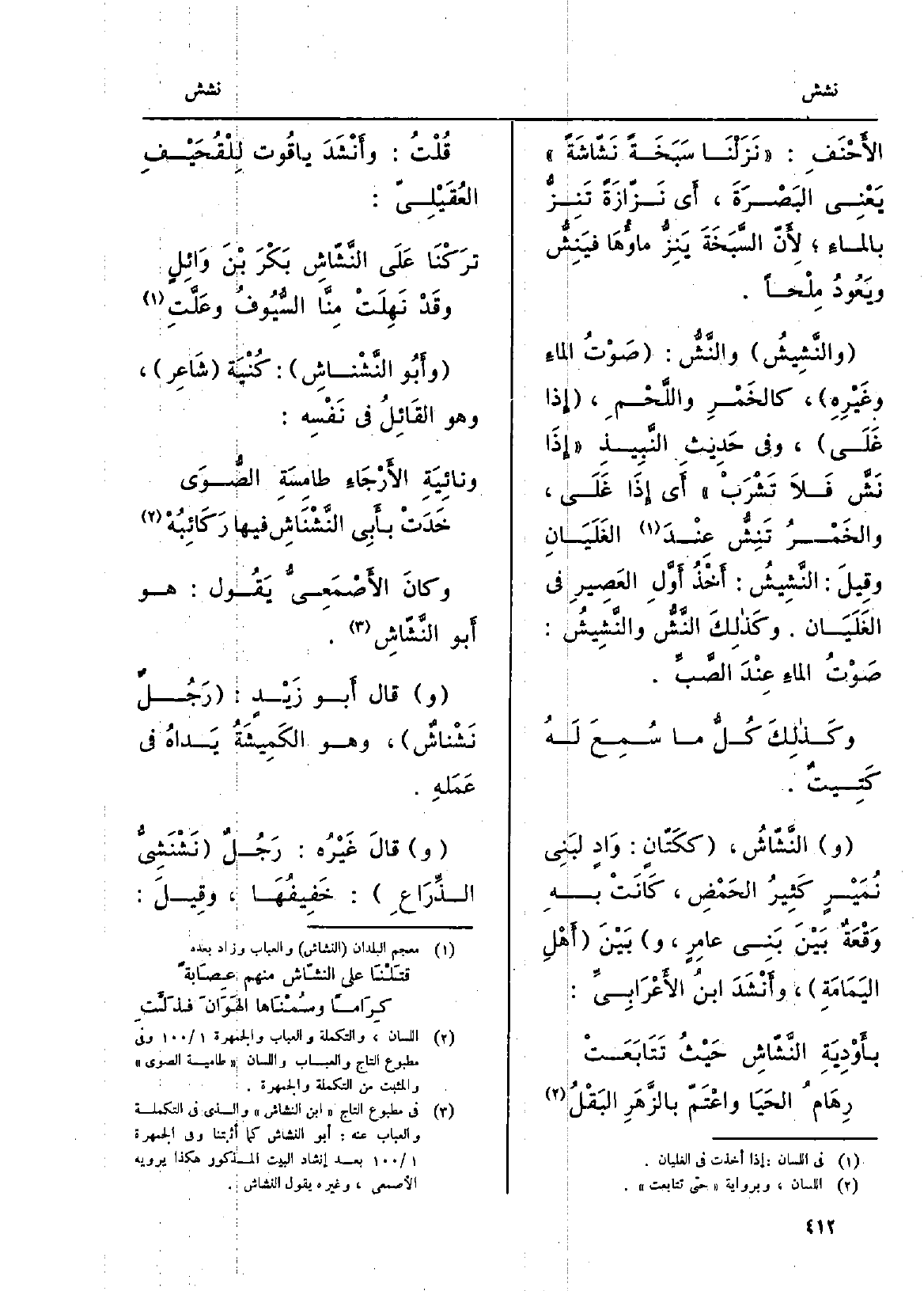 وأَبُو} النَّشْناشِ: كُنْيَة شَاعِر، وَهُوَ القَائِلُ فِي نَفْسِه: