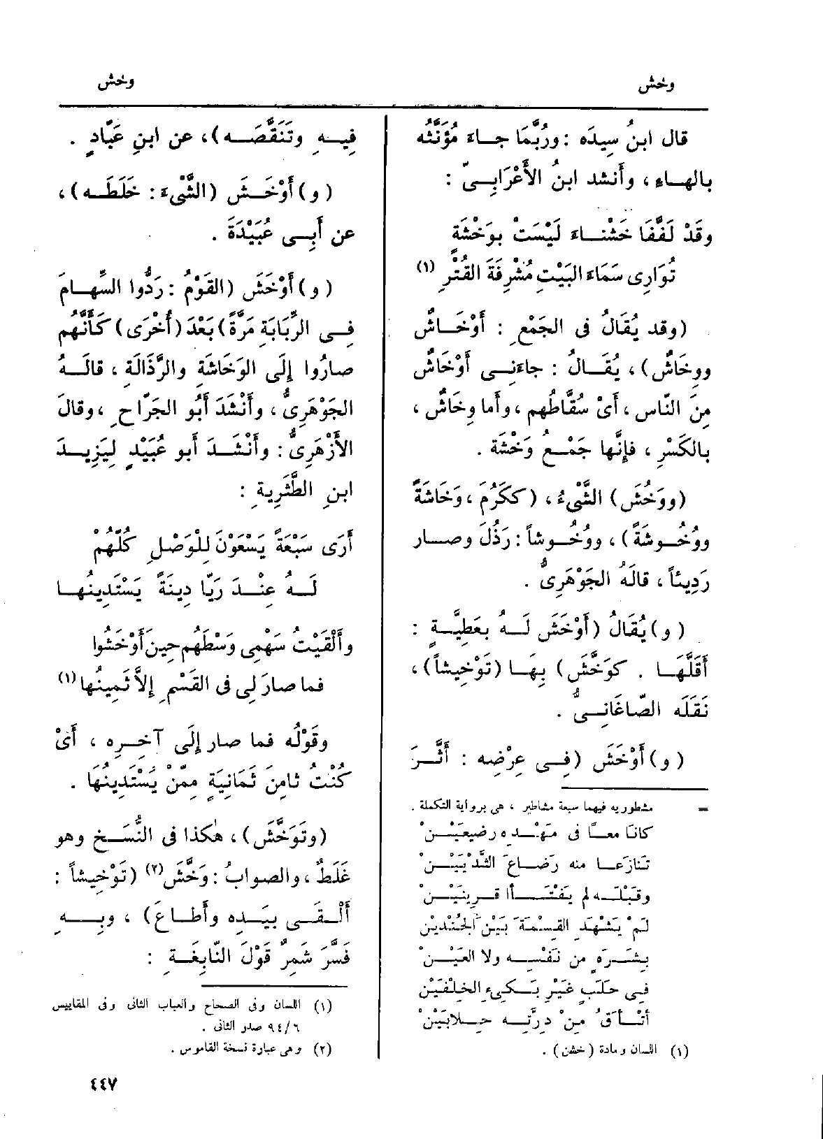 وَقد يُقَالُ فِي الجَمْعِ:} أَوْخَاشٌ {ووِخَاشٌ، يُقَالُ: جاءَنِي أَوْخَاشٌ مِنَ النّاس، أَيْ سُقَّاطُهم، وأَما} وِخَاشٌ، بالكَسْرِ، فإِنَّها جَمْعُ وَخْشَة. {ووَخُشَ الشَيءُ، ككَرُمَ،} وَخَاشَةً {ووُخُوشَةً،} ووُخُوشاً: رَذُلَ وَصَارَ رَدِيئاً، قالَهُ الجَوْهَرِيُّ. ويُقَالُ {أَوْخَشَ لَهُ بعَطِيَّةٍ: أَقَلَّهَا.} كوَخَّشَ بِهَا {تَوْخِيشاً، نَقَلَه الصّاغَانِيُّ. و} أُوْخَشَ فِي عِرْضِه: أَثَّرَ فِيهِ وتَنَقَّصَه، عَن ابنِ عَبّادٍ. وأَوْخَشَ الشَّيْءَ: خَلَطَه، عَن أَبِي عُبَيْدَةَ. وأَوْخَشَ القَوْمُ: رَدُّوا السِّهامَ فِي الرَّبَابَةِ مَرَّةً بَعْدَ أُخْرَى كَأَنَّهُم صارُوا إِلى {الوَخَاشَةِ والرَّذَالَةِ، قالَهُ الجَوْهَرِيُّ، وأَنْشَدَ أَبُو الجَرّاحِ، وقالَ الأَزْهَرِيُّ: وأَنْشَدَ أَبو عُبَيْدٍ لِيَزِيدَ ابنِ الطَّثَرِيَةِ:
