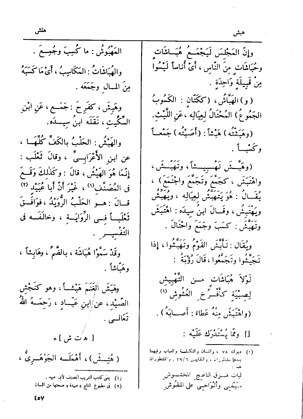 وإِنّ المَجْلِسَ ليَجْمَعُ هُبَاشَاتٍ وحُبَاشَاتٍ مِنَ النّاسِ، أَيْ أُناساً لَيْسُوا مِنْ قَبِيلَةٍ وَاحِدَةٍ. والهَبَّاشُ، ككَتّانٍ: الكَسُوبُ الجَمُوعُ المُحْتَالُ لِعِيَالِه، عَنِ اللَّيْثِ. وهَبَشْتُه هَبْشاً: أَصَبْتُه جَمْعاً وكَسْباً. وهَبَّشَ تَهْبِيشاً، وتَهَبَّشَ، واهْتَبَشَ، كجَمَّعَ وتَجَمَّعَ واجْتَمَعَ، يُقَالُ: هُوَ يَتَهَبَّشُ لِعِيَالِه، ويُهَبِّشُ ويَهْتَبِشُ، وقَالَ ابنُ سِيدَه: اهْتَبَشَ وتَهَّبَش: كَسَبَ وجَمَعَ واحْتَال. ويُقَال: تَأَبَّشَ القَوْمُ وتَهَبَّشُوا، إِذا تَجَيَّشُوا وتَجَمَّعُوا، قَالَ رُؤْبَةُ