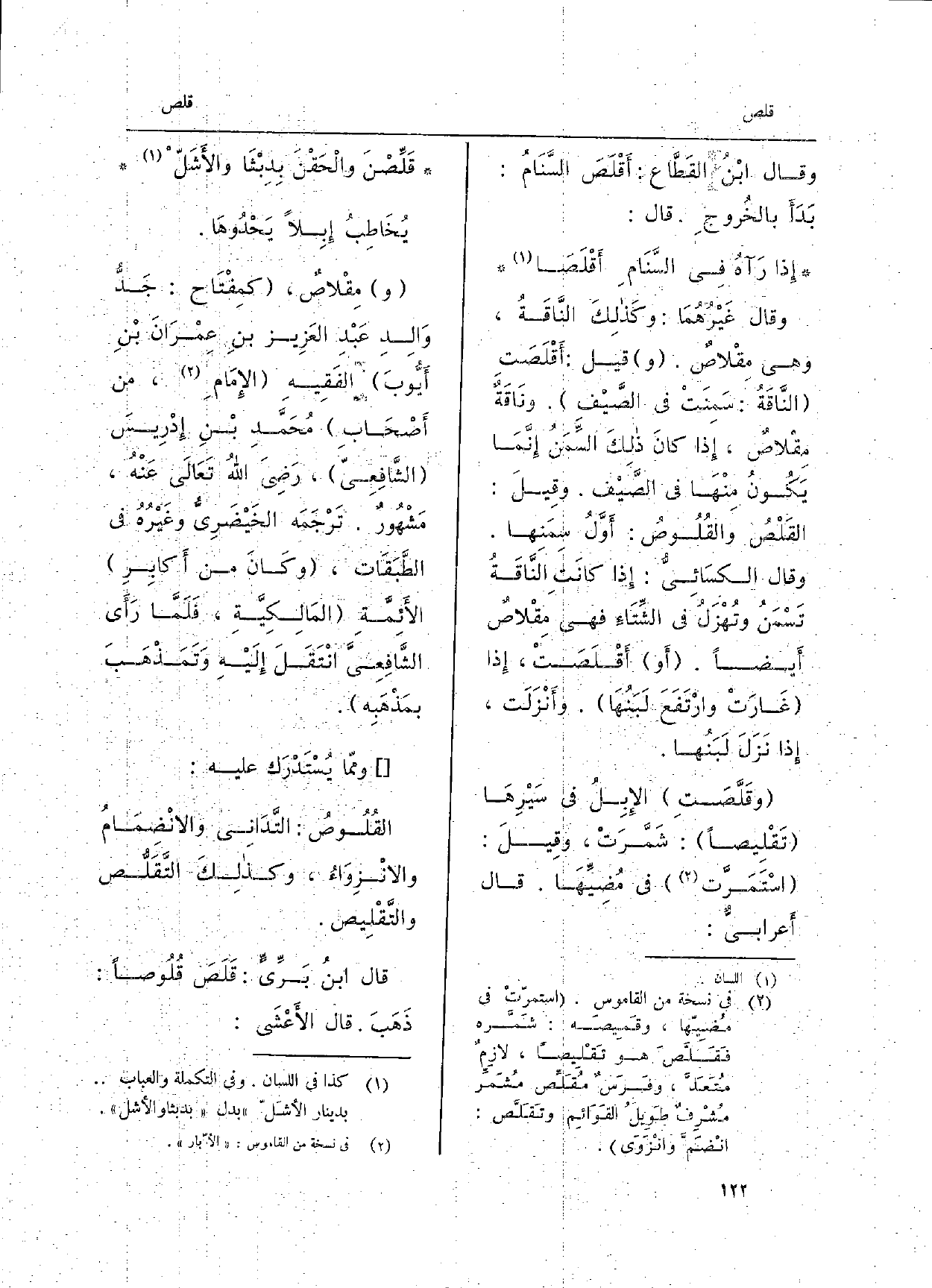 مقْلاصٌ، كمِفْتَاح: جَدُّ وَالِدِ عَبْدِ العَزِيز بنِ عِمْرَانَ بْنِ أَيُّوبَ الفَقِيهِ الإِمَامِ، من أَصْحَابِ مُحَمَّدِ بْنِ إِدْرِيسَ الشَّافِعِيّ، رَضِيَ اللهُ تَعَالَى عَنْهُ، مَشْهُورٌ. تَرْجَمَه الخَيْضَرِيُّ وغَيْرُهُ فِي الطَّبَقَات، وكَانَ من أَكابِرِ الأَئِمَّةِ المَالِكِيَّةِ، فَلَمَّا رأَى الشَّافِعِيَّ انْتَقَلَ إِلَيْهِ وَتَمَذْهَبَ بمَذْهَبِه. وممّا يُسْتَدْرَك عَلَيْهِ: القُلُوصُ: التَّدَانِي والانْضِمَامُ والانْزِوَاءُ، وكذلِكَ التَّقَلُّص والتَّقْلِيص. قَالَ ابنُ بَرِّيٍّ: قَلَصَ قُلُوصاً: ذَهَبَ. قَالَ الأَعْشَى: