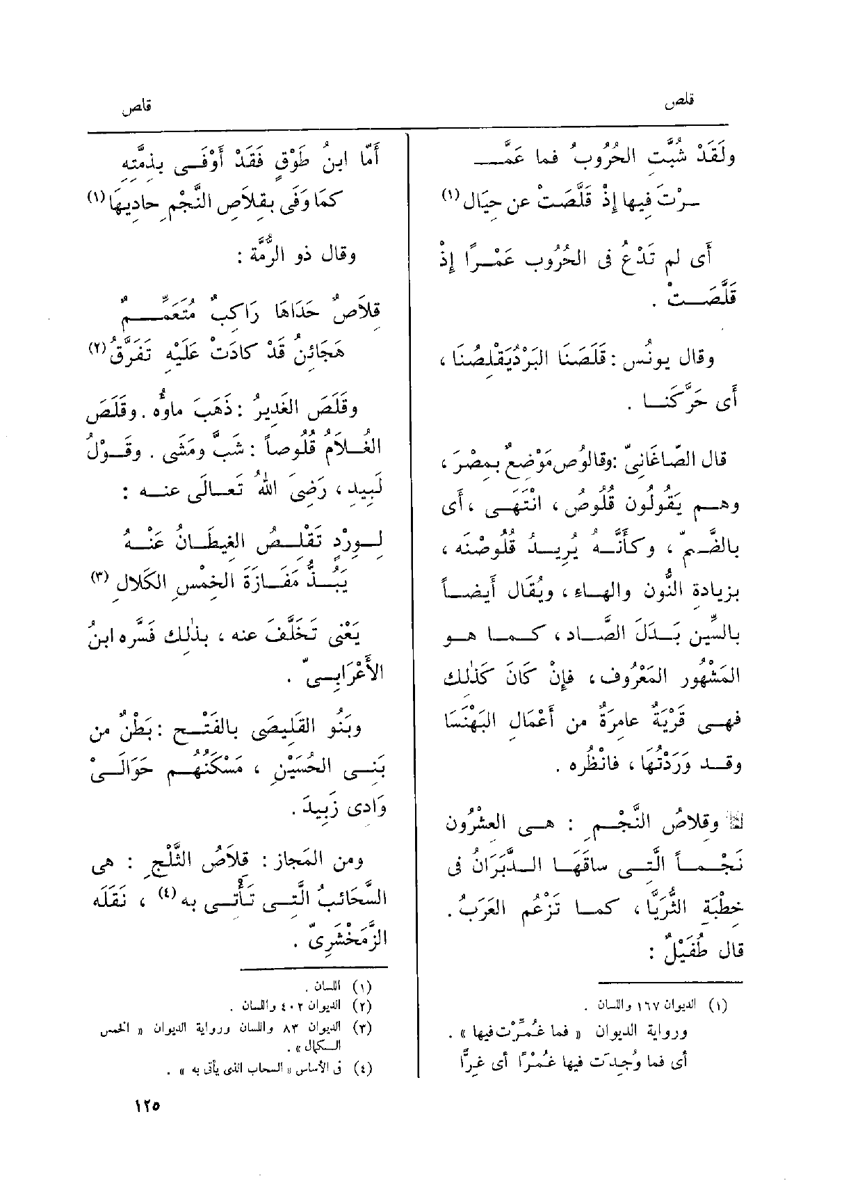 أَي لم تَدْعُ فِي الحُرُوب عَمْراً إِذْ قَلَّصَتْ. وَقَالَ يونُس: قَلَصَنَا البَرْدُ يَقْلِصُنَا، أَي حَرَّكَنا. قَالَ الصّاغَانِيّ: وقالوُص مَوْضِعٌ بمِصْرَ، وهم يَقُولُون قُلُوصُ، انْتَهَى، أَي بالضَّمّ، وكأَنَّهُ يُرِيدُ قُلُوصْنَه، بِزِيَادَة النُّون والهاءِ، ويُقَال أَيضاً بالسِّين بَدَلَ الصَّاد، كَمَا هُوَ المَشْهُور المَعْرُوف، فإِنْ كَانَ كَذلك فَهِيَ قَرْيَةٌ عامرَةٌ من أَعْمَال البَهْنَسَا وَقد وَرَدْتُهَا، فانْظُره. وقلاصُ النَّجْمِ: هِيَ العشْرُون نَجْماً الَّتِي ساقَهَا الدَّبَرَانُ فِي خطْبَةِ الثُّرِيَّا، كَمَا تَزْعُم العَرَبُ. قَالَ طُفَيْلٌ: