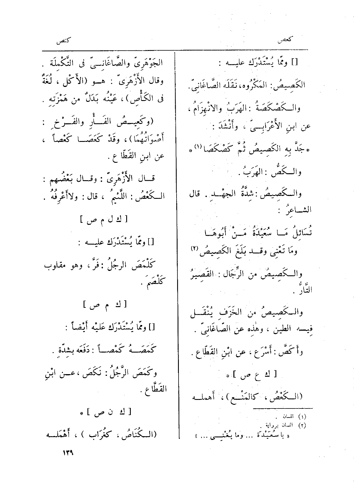 وممّا يُسْتَدْرَك عَلَيْهِ: كَلْمَصَ الرجُلُ: فَرَّ، وَهُوَ مقلوب كَلْصَمَ.