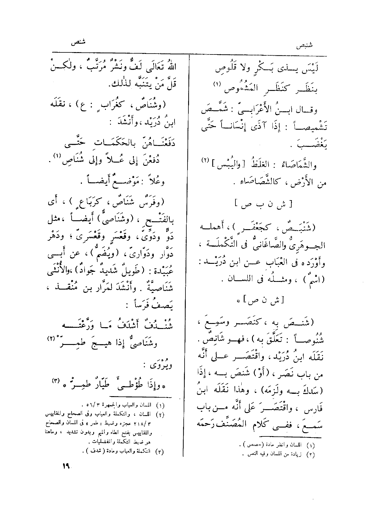 وعُلاً: مَوْضعٌ أَيضاً. وفَرَسٌ شَنَاصٌ، كرَبَاعٍ، أَي بالفَتْحِ، وشَنَاصيٌّ أَيضاً، ودَهْر دَوَّار ودَوّاريّ، ويُضَمُّ، عَن أَبي عُبَيْدة: طَوِيلٌ شَديدٌ جَوادٌ، والأُنْثَى شَنَاصيَّةٌ. وأَنْشَدَ لمَرَّار بن مُنْقذ، يَصفُ فَرَساً: