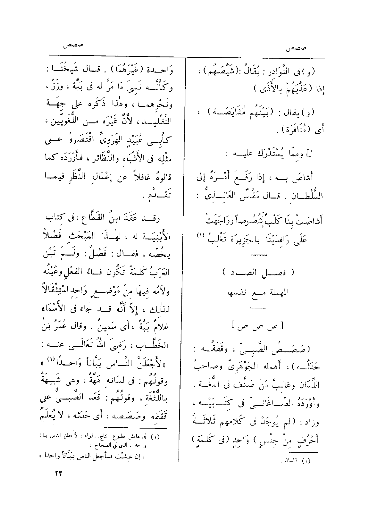 (فصل الصَّاد الْمُهْملَة مَعَ نَفسهَا)