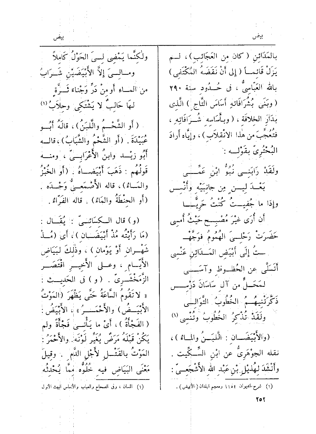 {والأَبْيَضَانِ: الَّلبَنُ والماءُ، نَقله الجَوْهَرِيُّ عَن ابْنِ السِّكِّيت وأَنْشَدَ لِهُذيْلِ بْنِ عَبْدِ اللهِ الأَشْجَعِيّ: