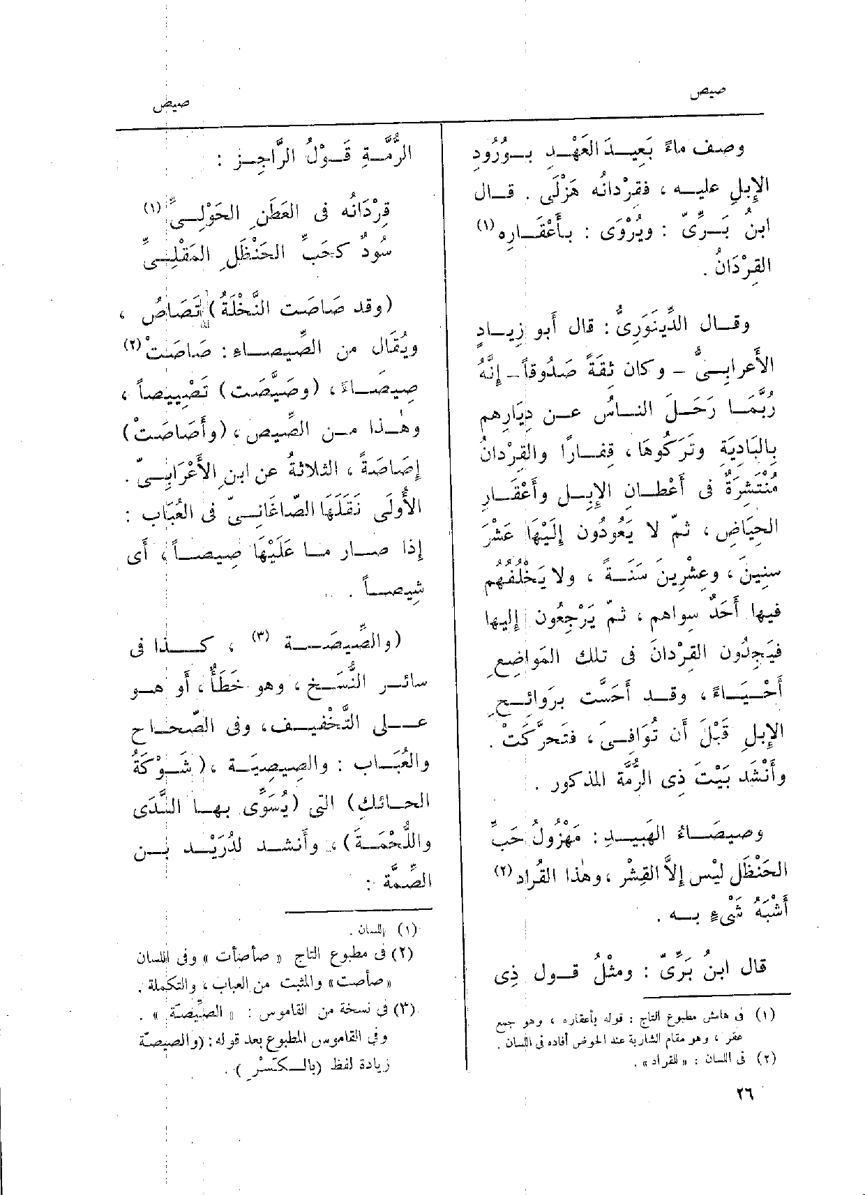 وأَنْشَد بَيْتَ ذِي الرُّمَّة الْمَذْكُور. {وصيصَاءُ الهَبيدِ: مَهْزُولُ حَبِّ الحَنْظَل ليْس إِلاَّ القِشْر، وَهَذَا القُراد أَشْبَهُ شَيْءٍ بِهِ. قَالَ ابنُ بَرِّيّ: ومثْلُ قَول ذِي الرُّمَّةِ قَوْلُ الرَّاجِز: