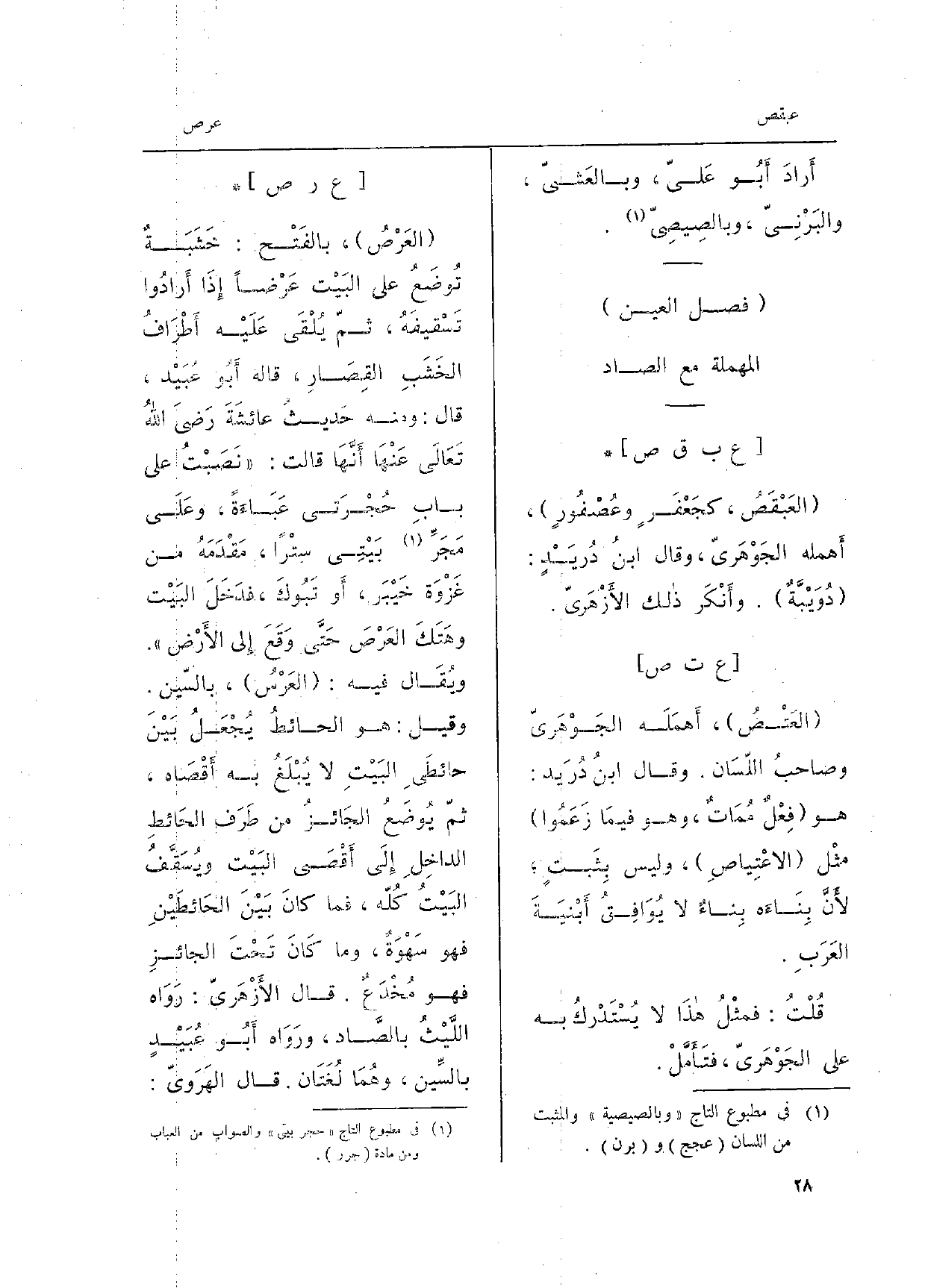 (فصل الْعين الْمُهْملَة مَعَ الصَّاد)