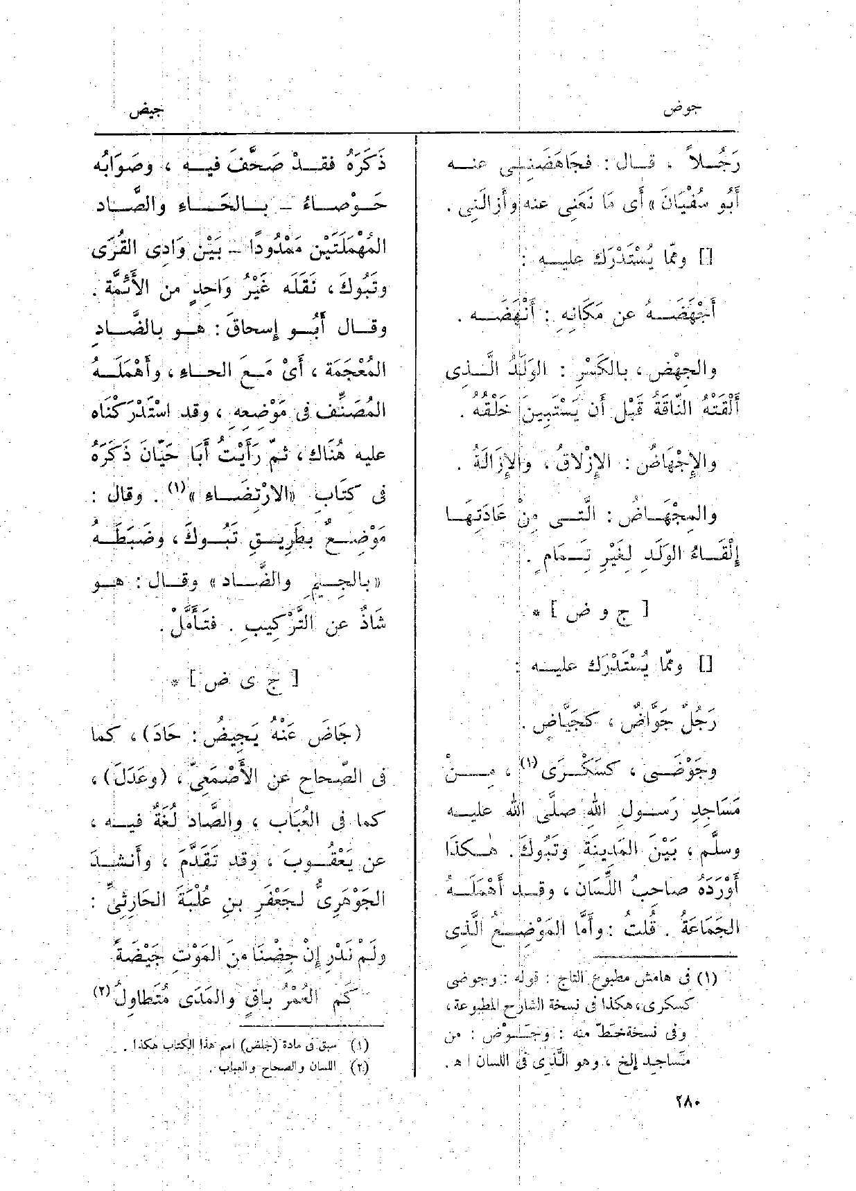 {جَاضَ عَنهُ} يَجِيضُ: حاد كَمَا فِي الصِّحَاح عَن الْأَصْمَعِي وَعدل كَمَا فِي الْعباب، وَالصَّاد لُغَة فِيهِ عَن يَعْقُوب وَقد تقدم، وَأَشد الْجَوْهَرِي لجَعْفَر بن علبة الْحَارِثِيّ: