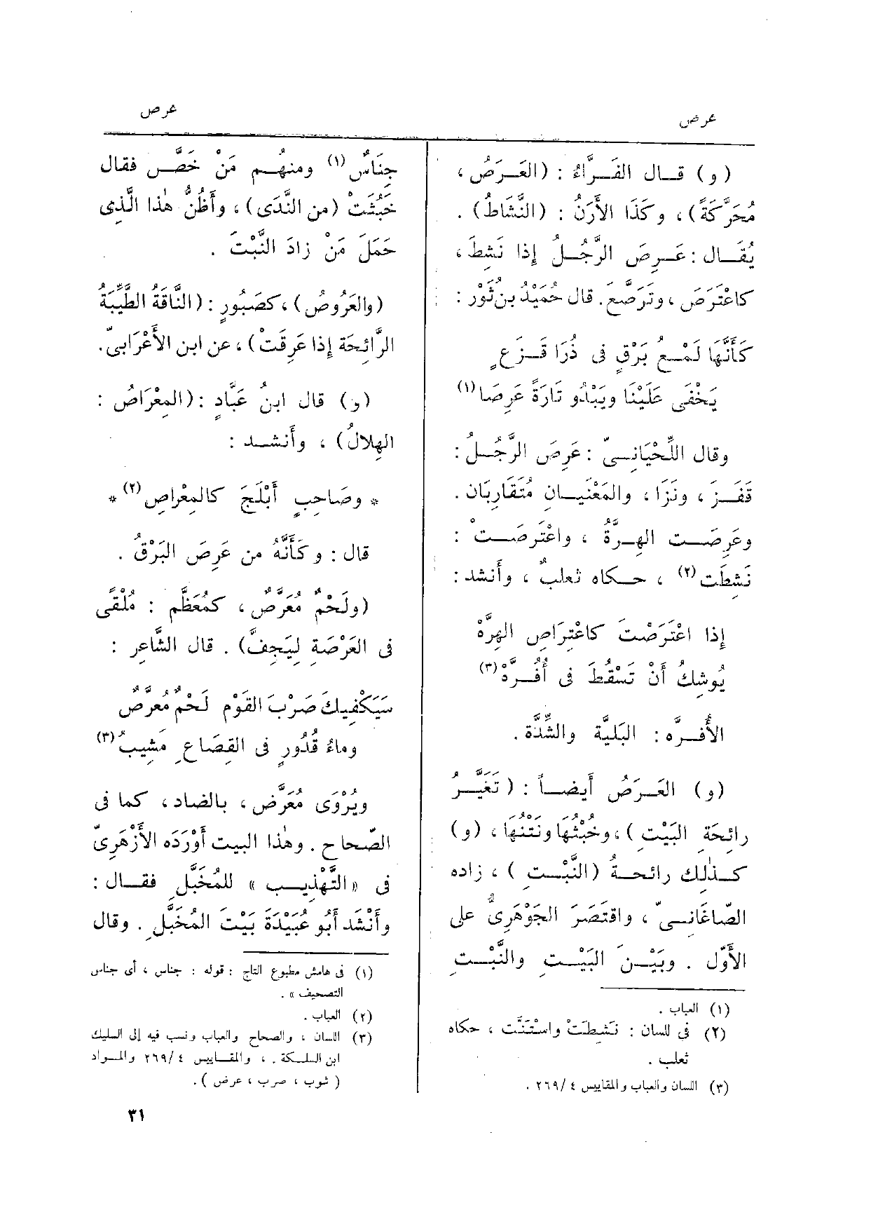ويُرْوَى مُعَرَّض، بالضاد، كَمَا فِي الصّحاح. وَهَذَا الْبَيْت أَوْرَدَه الأَزْهَرِيّ فِي التَّهْذِيب للمُخَبَّلِ فَقَالَ: وأَنْشَد أَبُو عُبَيْدَةَ بَيْتَ المُخَبَّلِ.