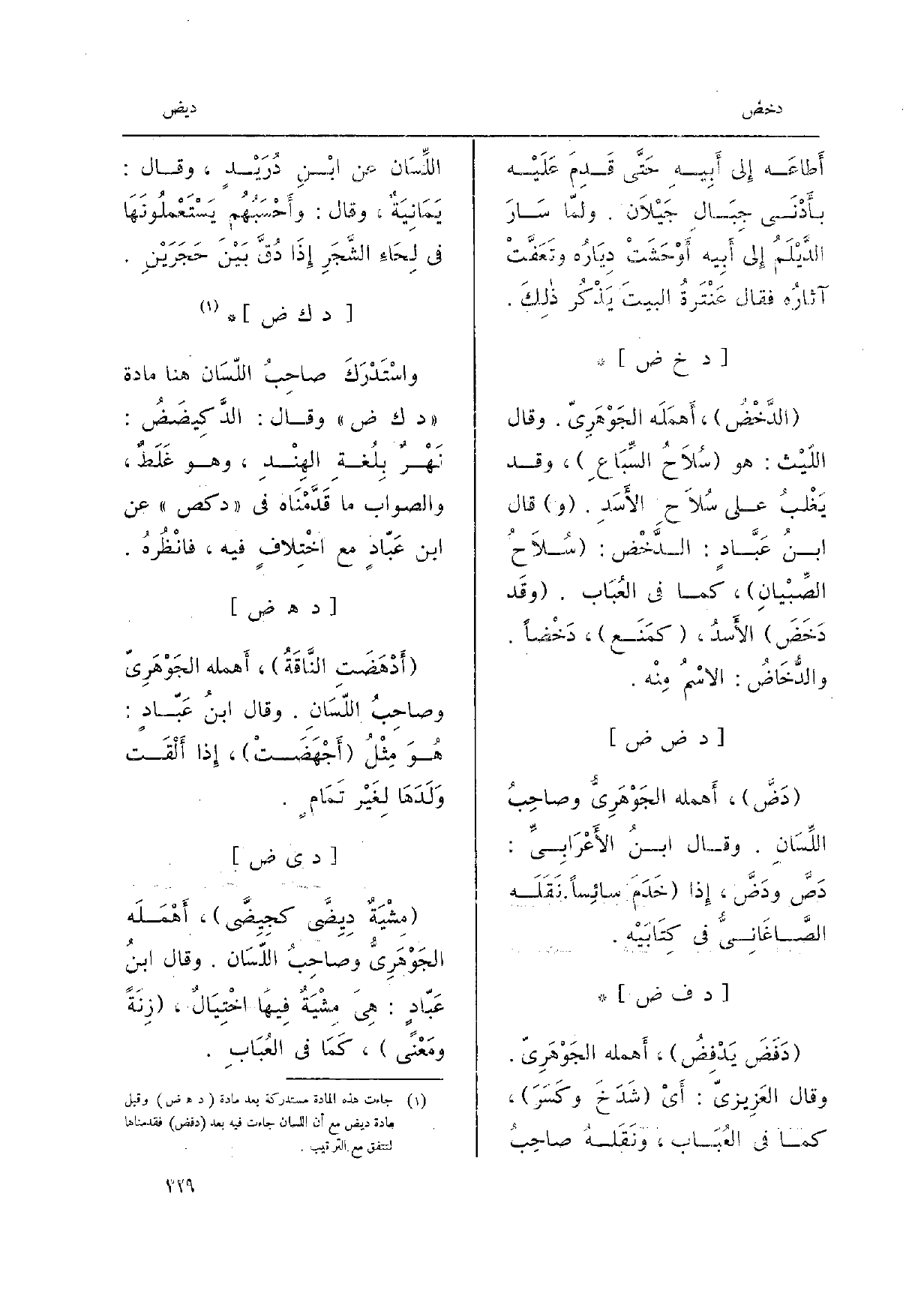 واسْتَدْرَكَ صاحِبُ اللّسَغان هُنَا مَادَّة د ك ض وَقَالَ: الدَّكِيضَضُ: نَهْرٌ بِلُغةِ الهِنْدِ، وَهُوَ غَلَطٌ، وَالصَّوَاب مَا قَدَّمْنَاه فِي دكص عَن ابْن عَبَّادٍ مَعَ اخْتِلافٍ فِيهِ، فانْظُرهُ.