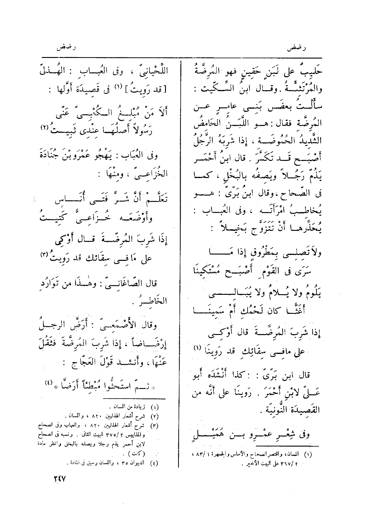قَالَ الصَّاغَانِيّ: وهذَا من تَوَارُدِ الخَاطِرُ. وَقَالَ الأَصْمَعِيّ:} أَرَضَّ الرجلُ {إِرْضَاضاً، إِذا شَرِبَ} المُرِضَّةَ فثَقُلَ عَنْهَا، وأَنشد قَوْلَ العَجّاج: ثمّ استَحثُّوا مُبْطِئاً أَرَضّاً