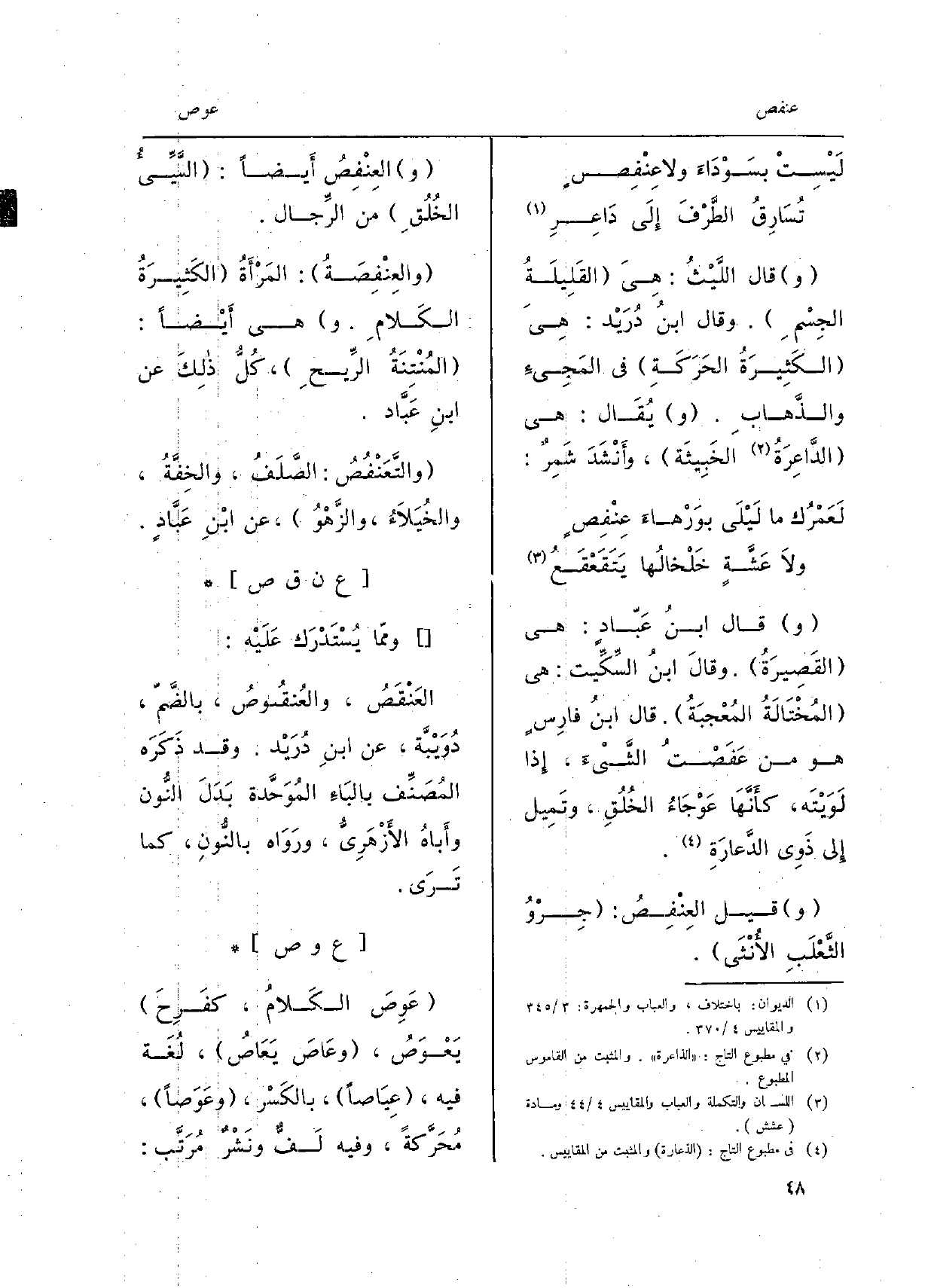 وممّا يُسْتَدْرَك عَلَيْه: العَنْقَصُ، والعُنْقُوصُ، بالضَّمّ، دُوَيْبَّة، عَن ابنِ دُرَيْد. وَقد ذَكَرَه المُصَنِّف بالبَاءِ المُوَحَّدة بَدَلَ النُّون وأَباهُ الأَزْهَرِيُّ، ورَوَاه بالنُّونِ، كَمَا تَرَى.