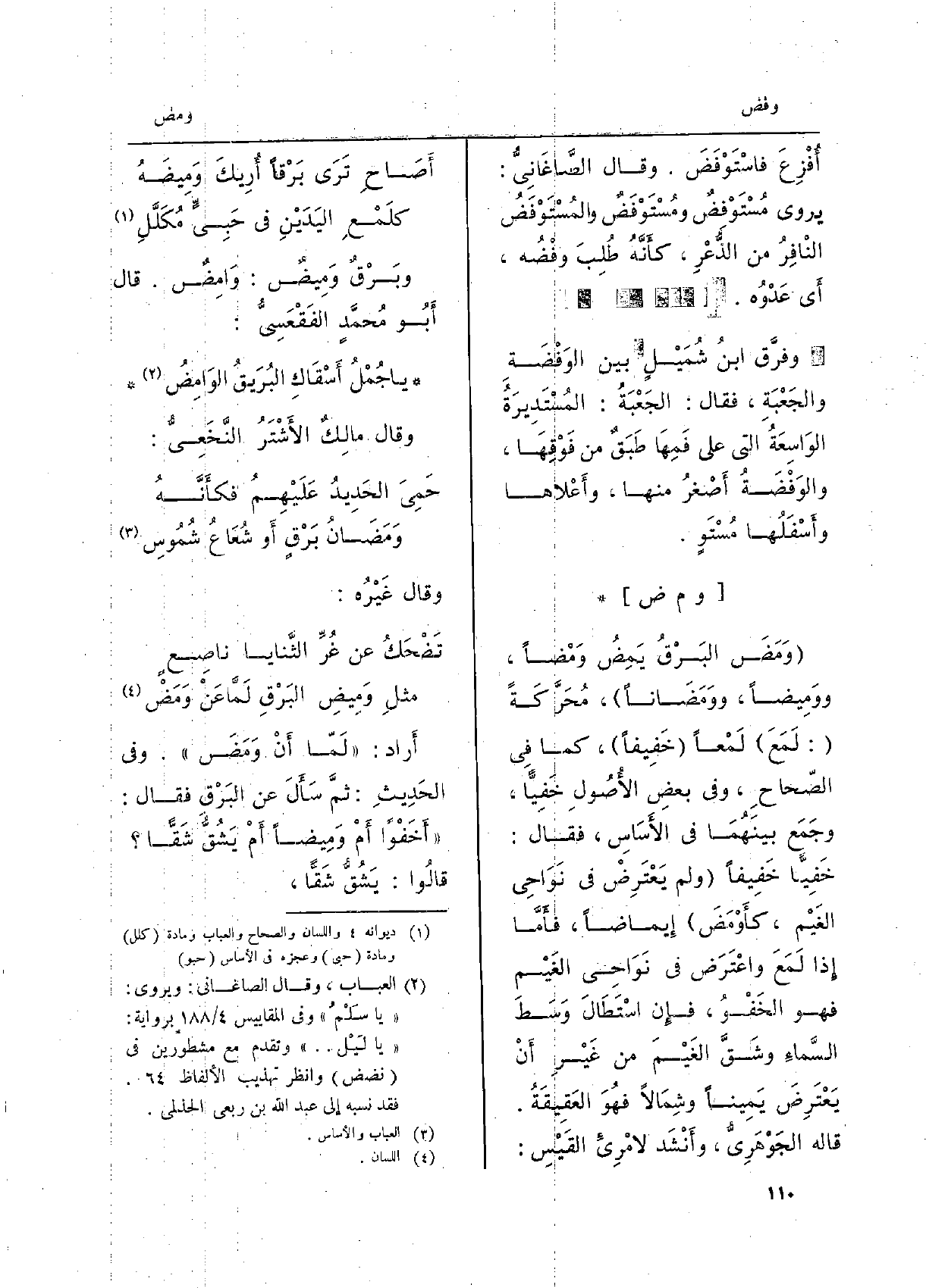أَرادَ: لَمّا أنْ} وَمَضَ. وَفِي الحَديث: ثمَّ سألَ عَن البَرْقِ فَقَالَ: أَخَفْواً أم! وَميضاً أم يَشُقُّ شَقًّا قَالُوا: يَشُقُّ شَقًّا،