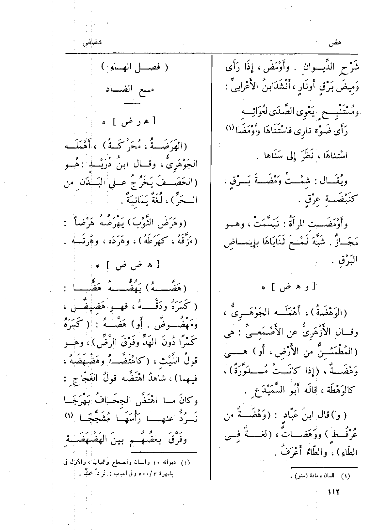 {الوَهْضَةُ، أَهْمَلَهُ الجَوْهَرِيّ، وَقَالَ الأزهريُّ عَن الأَصْمَعِيّ: هِيَ المُطْمَئِنُّ من الأرضِ، أَو هِيَ} وَهْضَةٌ، إِذا كَانَت مُدَوَّرَةً، كالوَهْطَة، قالَهُ أَبو السَّمَيْدَعِ. وَقَالَ ابْن عَبّادٍ: {وَهْضَةٌ من عُرْفُطٍ} ووَهَضاتٌ، لغةٌ فِي الطّاءِ، والطّاءُ أَعْرَفُ.