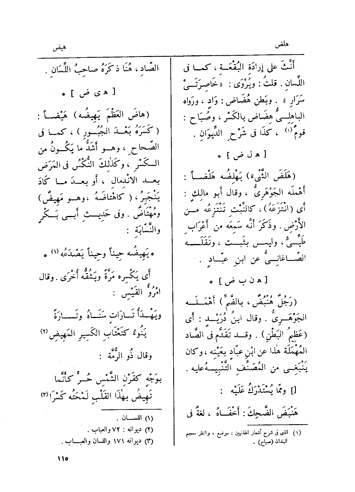 أنَّثَ عَلَى إرادَةِ البُقْعَةِ، كَمَا فِي اللِّسان. قلتُ: ويُرْوى: خاصِرَتَيْ سَرارِ. وبَطن {هُضاض: وادٍ، وَرَوَاهُ الباهليُّ} هِضاض بالكَسْرِ، وصُباح: قومٌ، كَذَا فِي شرحِ الدِّيوان.