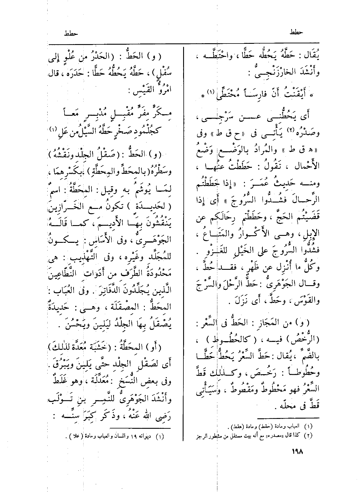 والحَطُّ: صَقْلُ الجِلْدِ ونَقْشُهُ وسَطْرُهُ {بالمِحَطِّ} والمِحَطَّةِ، بكَسْرِهِما لِمَا يوشَمُ بِهِ، وقيلَ: {المِحَطَّةُ: اسمٌ لحَديدةٍ تَكُونُ مَعَ الخرَّازينَ يَنْقُشونَ بهَا الأَديمَ، كَمَا قالَهُ الجَوْهَرِيّ، وَفِي الأَساسِ: يَكُونُ للمُجَلَّدِ وغيرِه، وَفِي التَّهذيبِ: هِيَ مَحْدودَةُ الطَّرَفِ من أَدَواتِ النَّطَّاعينَ الَّذينَ يُجَلِّدُونَ الدَّفاتِرَ.