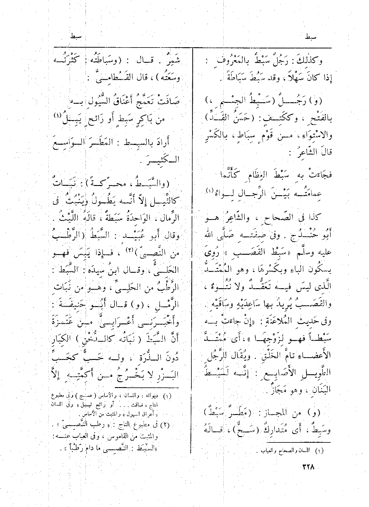 أَرادَ بالسبِط: المَطَرَ الواسِعَ الكَثيرَ. والسَّبْطُ، مُحَرَّكَةً: نَباتٌ كالثِّيل إلاَّ أنَّه يَطولُ ويَنْبُتُ فِي الرِّمال، الواحِدَةُ سَبَطةٌ، قالَهُ اللَّيْثُ. وقالَ أَبُو عُبَيْدٍ: السَّبَطُ الرَّطْبُ من النَّصِيّ، فَإِذا يَبِسَ فَهُوَ الحَلِيُّ، وقالَ ابْن سِيدَه: السَّبَط: الرَّطْبُ من الحَلِيِّ، وَهُوَ من نَباتِ الرَّمْلِ، وقالَ أَبُو حَنيفَةَ: وأَخْبَرَني أَعْرابِيٌّ من عَنَزَةَ أنَّ السَّبَطَ نَباتُه كالدُّخْنِ الكِبارِ دونَ الذُّرَةِ، وَله حَبٌّ كحَبِّ البَزْرِ لَا يَخْرُجُ من أَكِمَّتِهِ إلاَّ