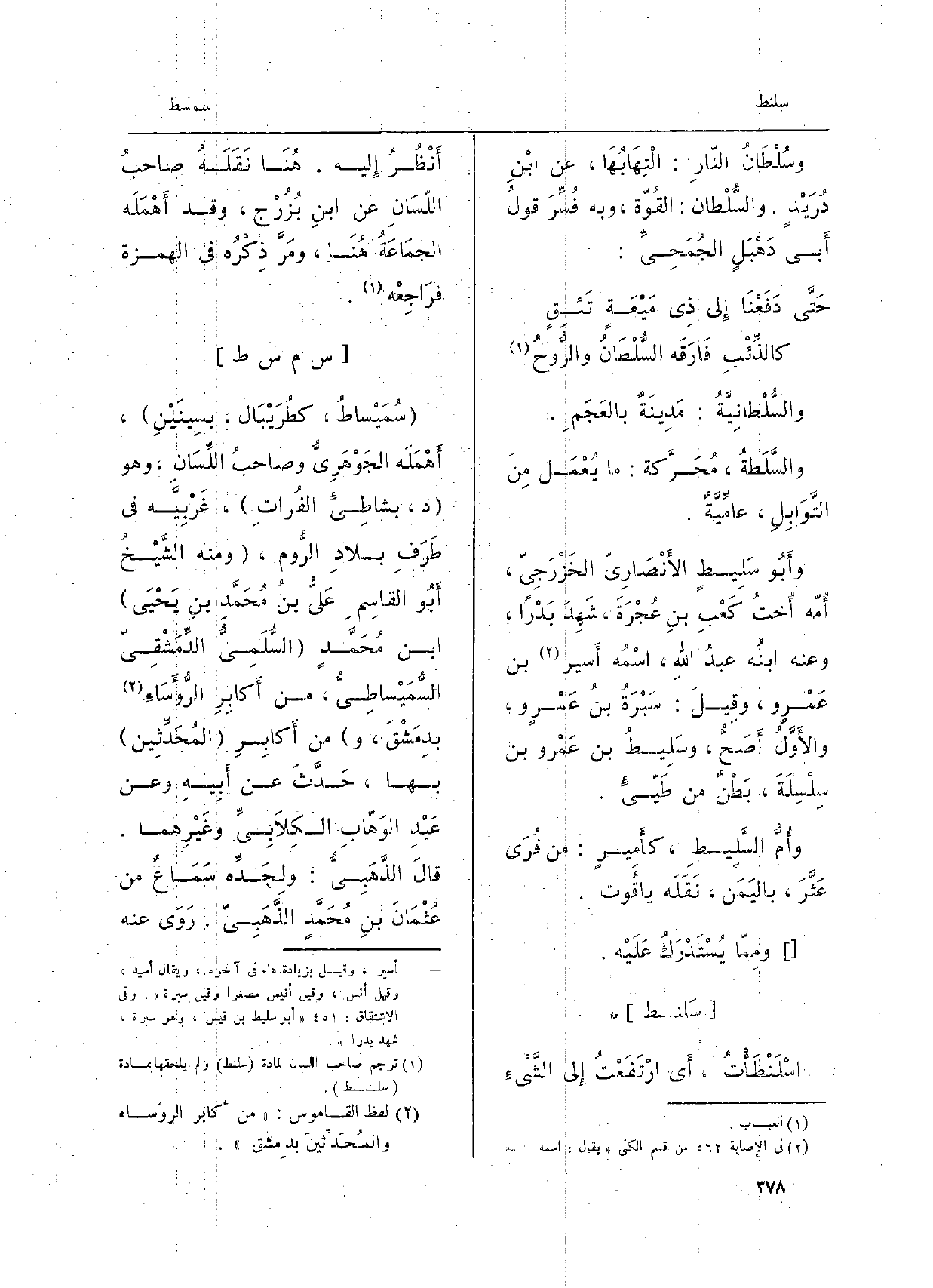 والسُّلْطانِيَّةُ: مَدينَةٌ بالعَجَمِ. والسَّلَطَةُ، مُحَرَّكَةً: مَا يُعْمَلُ من التَّوابِلِ، عامِّيَّةٌ. وأَبو سَليطٍ الأَنْصارِيّ الخَزْرَجِيّ، أُمّه أُختُ كَعْبِ بنِ عُجْرَةَ، شَهِدَ بَدْراً، وَعنهُ ابنُه عبدُ الله، اسْمه أَسير بن عمرٍ و، وقِيل: سَبْرَةُ بنُ عمرٍ و، والأَوَّلُ أَصَحُّ، وسَليطُ بن عَمْرو بن سِلْسِلَةَ، بَطْنٌ من طَيِّئٍ.