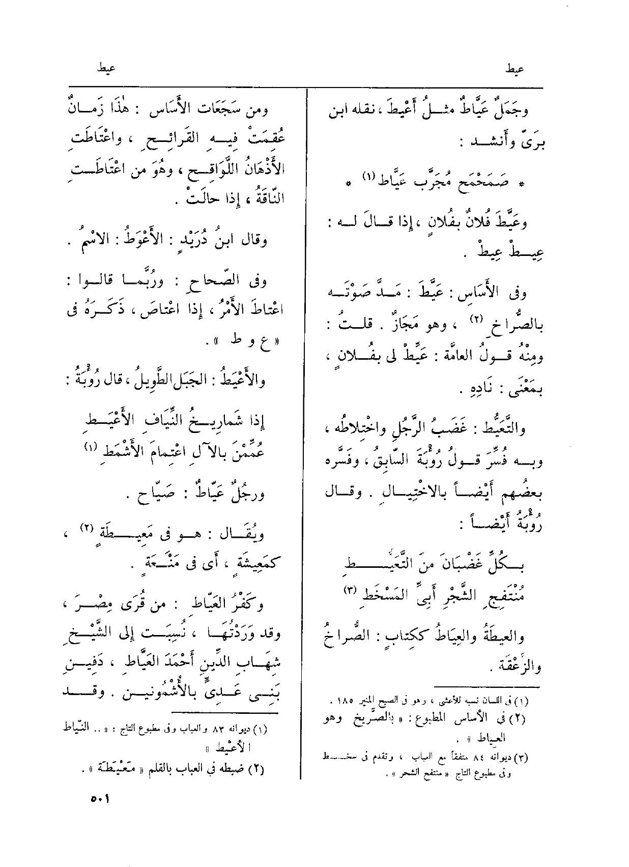 {والأَعْيَطُ: الجَبَل الطَّويلُ، قَالَ رؤبَةُ: إِذا شَمَاريخُ النَّيَافِ} الأَعْيَطِ عُمَّمْنَ بالآلِ اعْتِمامَ الأَشْمَطِ ورجلٌ {عَيَّاطٌ: صَيَّاح. وَيُقَال: هُوَ فِي} مَعِيطَةٍ، كمَعِيشَةٍ، أَي فِي مَنَعَةٍ. وكَفْرُ! العَيَّاطِ: من قُرى مِصْرَ، وَقد وَرَدْتُها، نُسِبَتْ إِلى الشَّيْخِ شِهابِ الدَّينِ أحمَدَ العَيَّاطَ، دَفينِ بني عَدِيٍّ بالأُشْمُونين. وَقد