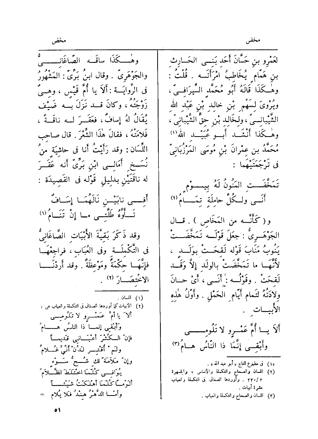 وَقَدْ ذَكَرَ بقيَّةَ الأَبياتِ الصَّاغَانِيُّ فِي التَّكْمِلَة وَفِي العُبَاب، فراجِعْها فإِنَّها حِكْمَةٌ ومَوْعِظَةٌ. وَقَدْ أَرَدْنا الاخْتِصارَ.