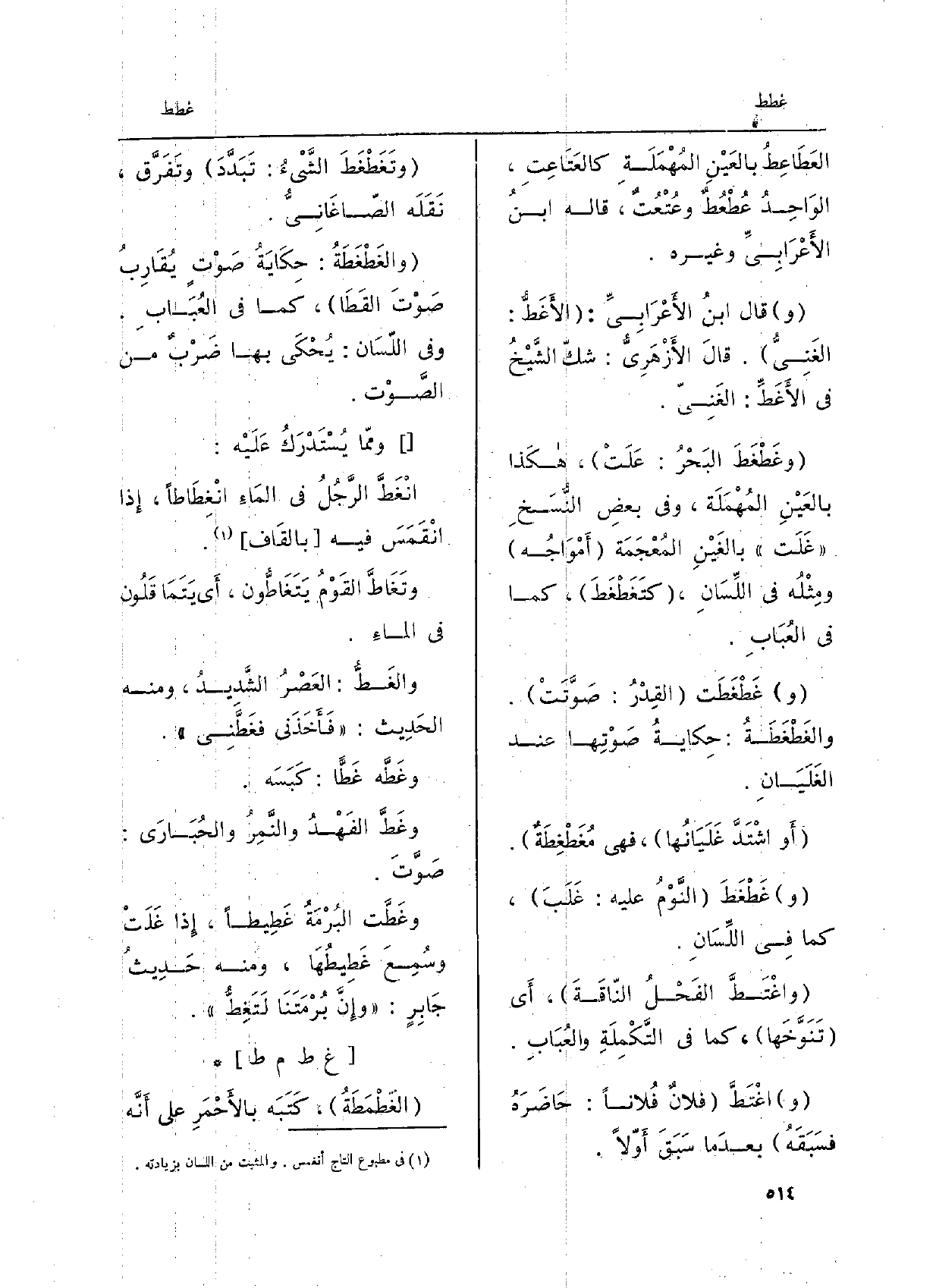 الغَطْمَطَةُ، كَتَبَه بالأَحْمَرِ على أَنَّه