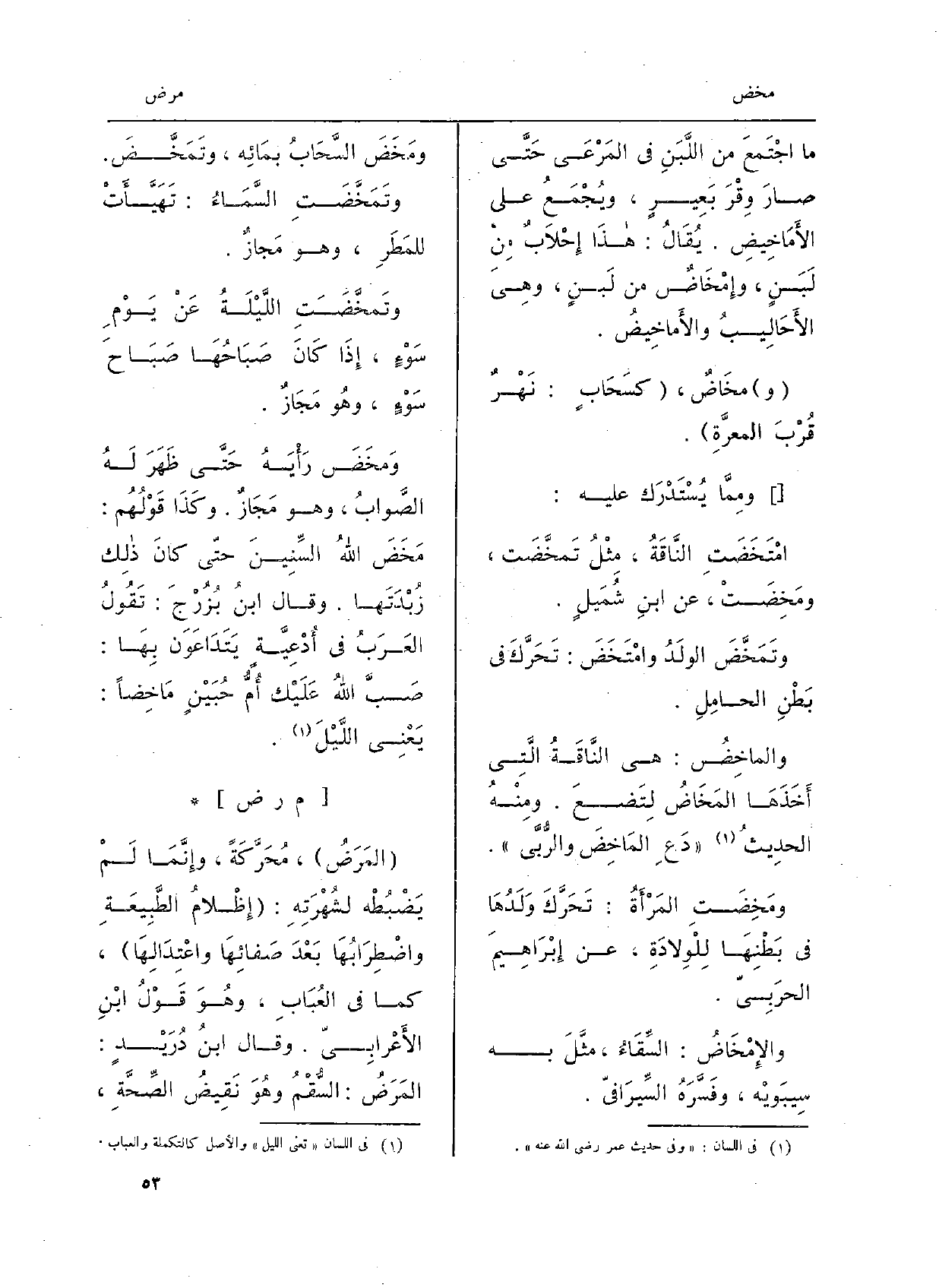 المَرَضُ، مُحَرَّكَةً، وإِنَّما لم يَضْبُطْه لشُهْرَتِهِ: إِظْلامُ الطَّبيعَةِ واضْطِرابُها بعدَ صَفائِها واعْتِدالِها، كَمَا فِي الْعباب، وَهُوَ قَوْلُ ابنِ الأَعْرَابيّ. وَقَالَ ابنُ دُرَيْدٍ: المَرَضُ: السُّقمُ وَهُوَ نَقيضُ الصِّحَّةِ،