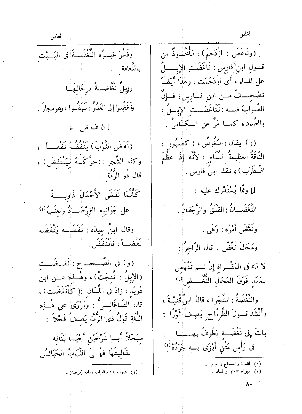 وَقَالَ ابنُ سِيدَه: نَفَضَهُ يَنْفُضُهُ نَفْضاً، فانْتَفَضَ. وَفِي الصّحاح: نَفَضَتِ الإِبِلُ: نَتَجَتْ، وَهَذِه عَن ابْن دُرَيْدٍ، زادَ فِي اللّسَان: كأَنفَضَتْ، قالَ الصَّاغَانِيُّ: ويُروى عَلَى هَذِه اللُّغَةِ قَوْلُ ذِي الرُّمَّة يَصِفُ فَحْلاً: