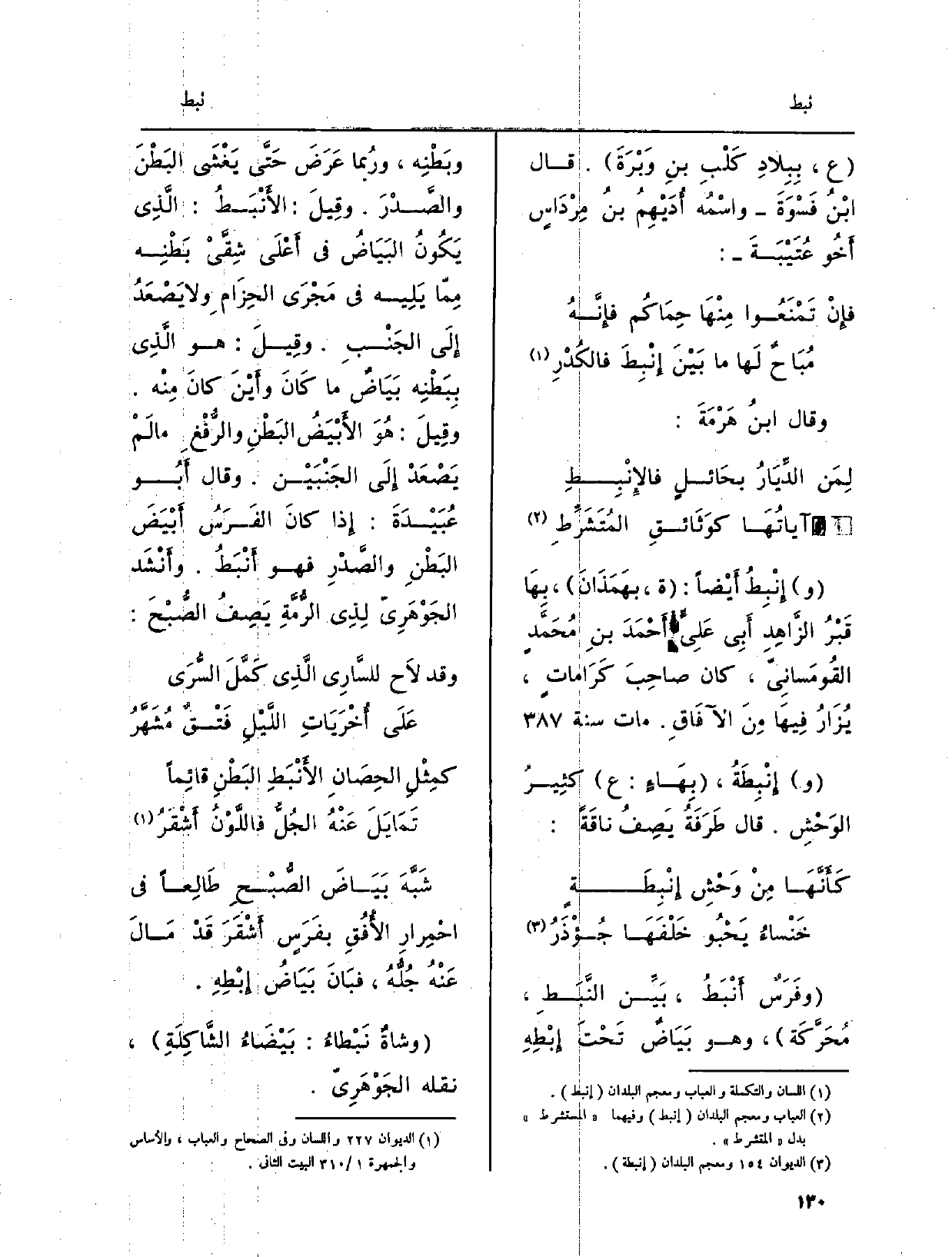 وإِنْبِطَةُ، بِهَاءٍ، ع، كثِيرُ الوَحْشِ. قَالَ طَرَفَةُ يَصِفُ ناقَةً: