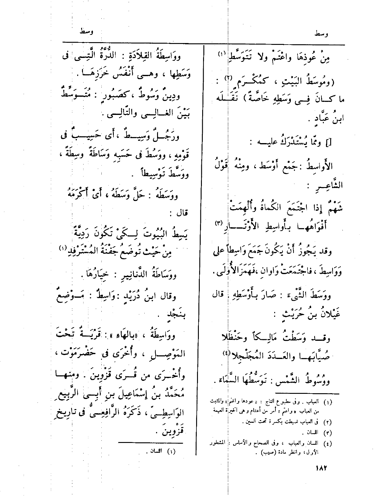 {ووَسَطَ الشَّيْءَ: صَارَ بأَوْسَطِهِ. قَالَ غَيْلانُ بنُ حُرَيْثٍ: