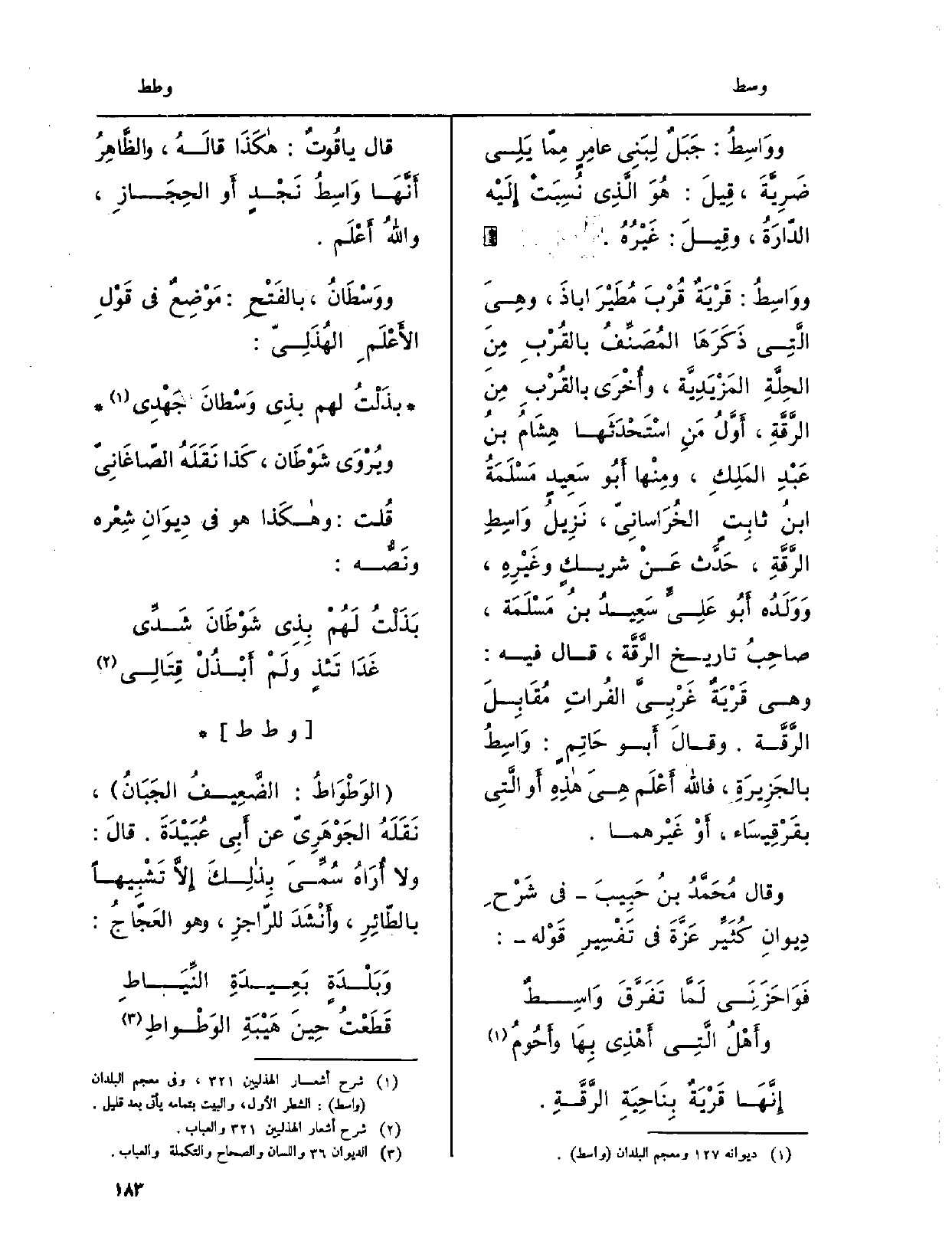 ووَاسِطُ: قَرْيَةٌ قُرْبَ مُطَيْرَاباذَ، وهِيَ الَّتِي ذَكَرَها المُصَنِّفُ بالقُرْبِ مِنَ الحِلَّةِ المَزْيَدِيَّة، وأُخْرَى القُرْبِ مِنَ الرَّقَّةِ، أَوَّلُ مَنِ اسْتَحْدَثَها هِشَامُ بنُ عَبْدِ المَلِك، ومِنْها أَبُو سَعِيدٍ مَسْلَمَةُ ابنُ ثابِتٍ الخُرَاسانِيّ، نَزيلُ وَاسِطِ الرَّقَّةِ، حَدَّثَ عَنْ شريكٍ وغَيْرِهِ، وَوَلَدُه أَبُو عَلِيٍّ سَعِيدُ بنُ مَسْلَمَة، صاحِبُ تَارِيخ الرَّقَّة، قَالَ فِيهِ: وَهِي قَرْيَةٌ غَرْبِيِّ الفُراتِ مُقَابِلَ الرَّقَّة. وقالَ أَبو حَاتِمٍ: وَاسِطُ بالجَزِيرَةِ، فَالله أَعْلَم هِيَ هذِهِ أَو الَّتِي بقَرْقِيسَاء، أَوْ غَيْرهما. وَقَالَ مُحَمَّدُ بنُ حَبِيبَ فِي شَرْحٍ دِيوانِ كُثَيِّر عَزَّةَ فِي تَفْسِيرِ قَوْله: