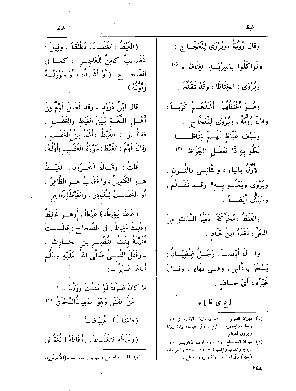 قَالَ ابنُ دُرَيْدٍ وَقد فَصَلَ قَوْمٌ مِنْ أَهْلِ اللُّغَةِ بَيْنَ} الغَيْظِ والغَضَبِ فقالُوا: الغَيْظُ أَشَدُّ مِنْ الغضَبِ.
