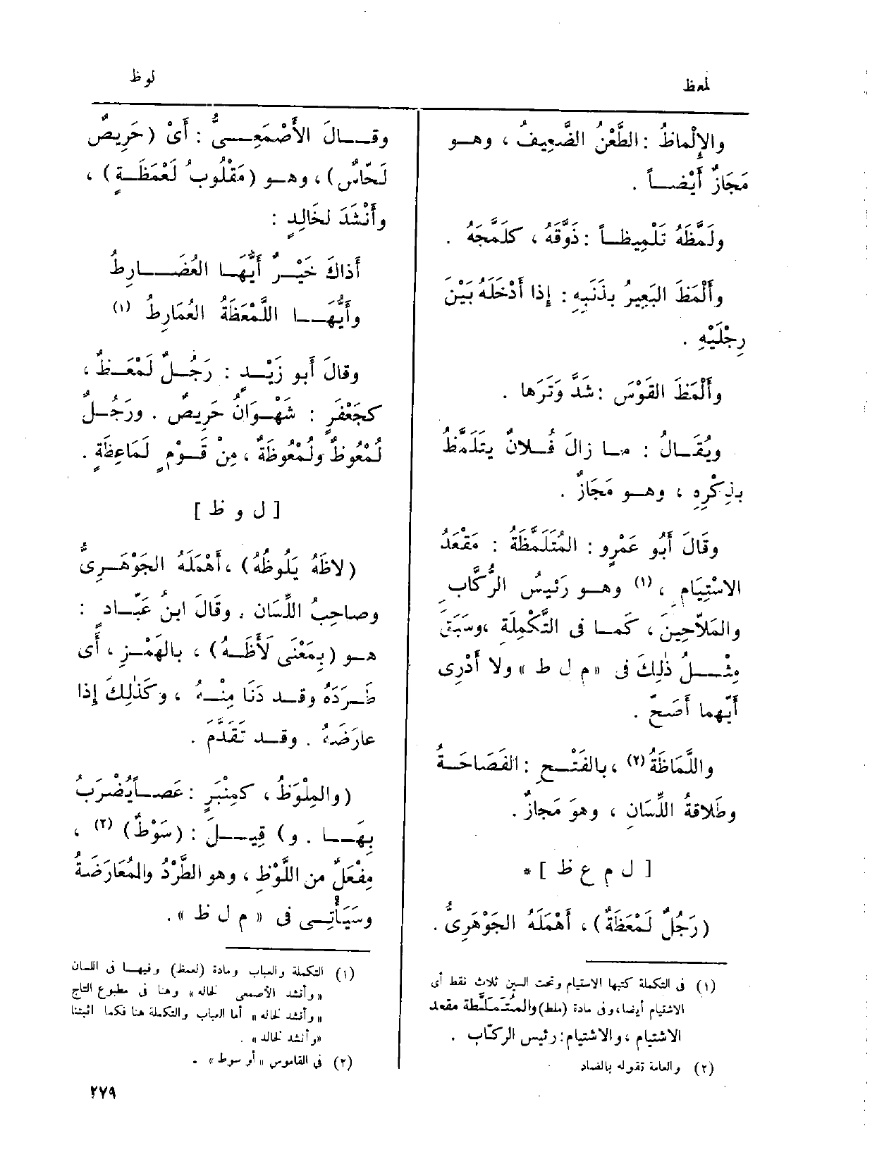 وقالَ أَبُو زَيْدٍ: رَجُلٌ لَمْعَظٌ، كجَعْفَرٍ: شَهْوَانُ حَرِيصٌ. ورَجُلٌ لُمْعُوظٌ ولُمْعُوظَةٌ، مِنْ قَوْمٍ لَمَاعِظَةٍ.