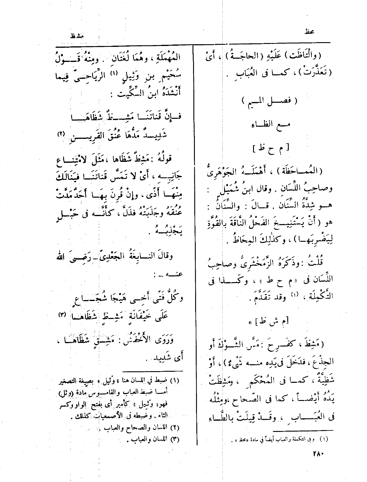 المُماحَظَة، أَهْمَلَهُ الجَوْهَرِيُّ وصاحِبُ اللِّسَانِ. وَقَالَ ابنُ شُمَيْلٍ: هُوَ شِدَّةُ السِّنَان. قالَ: والسِّنَانُ: هُوَ أَنْ يَسْتَنِيخَ الفَحْلُ النَّاقَةَ بالقُوَّةِ لِيَضْرِبَها، وكذلِكَ المِحَاظُ. قُلْتُ: وذَكَرَهُ الزَّمَخْشَرِيُّ وصاحِبُ اللِّسَان فِي م ح ط، وكَذا فِي التَّكْمِلَة، وَقد تَقَدَّمَ.