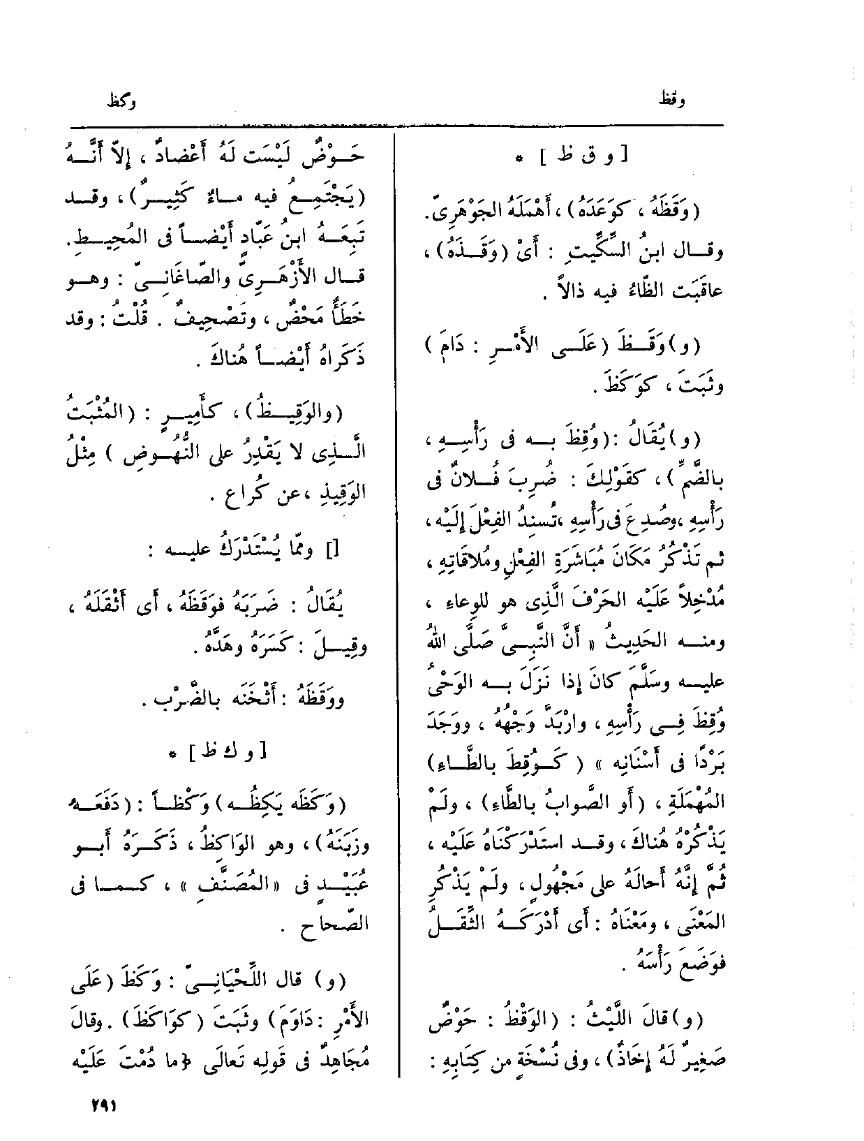 (و) } وَقَظَ عَلَى الأَمْرِ: دَامَ وثَبَتَ، كوَكَظَ.