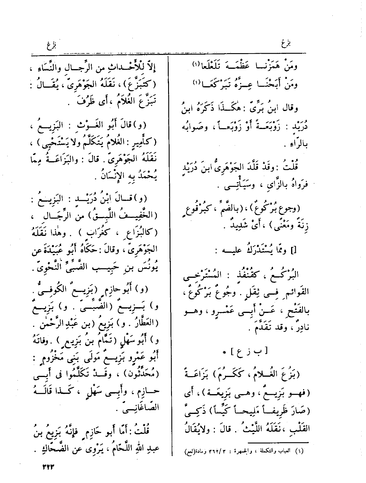 وقالَ ابْنُ دُرَيْدٍ: البَزِيعُ: الخَفِيفُ اللَّبِقُ من الرِّجَالِ، كالبُزَاعِ، كغُرَابٍ. وَهَذَا نَقَلَهُ الجَوْهَرِيُّ، وقالَ: حَكَاُه أَبُو عُبَيْدَةَ عَن يُونُسَ بنِ حَبِيب الضَّبِّيِّ نَحْوِيّ.