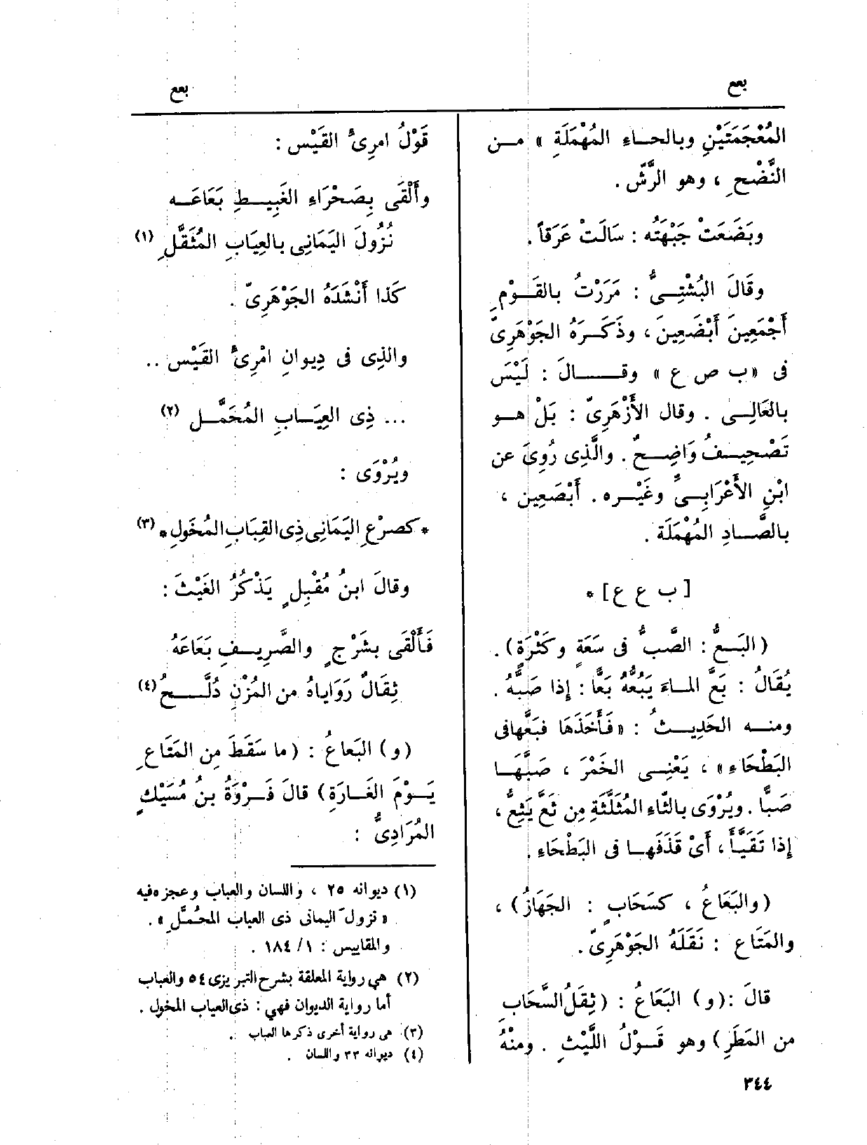 قالَ: (و) {البَعَاعُ: ثِقَلُ السَّحَابِ من المَطَرِ وَهُوَ قَوْلُ اللَّيْثِ. ومنْه قَوْلُ امْرِئِ القَيْسِ: