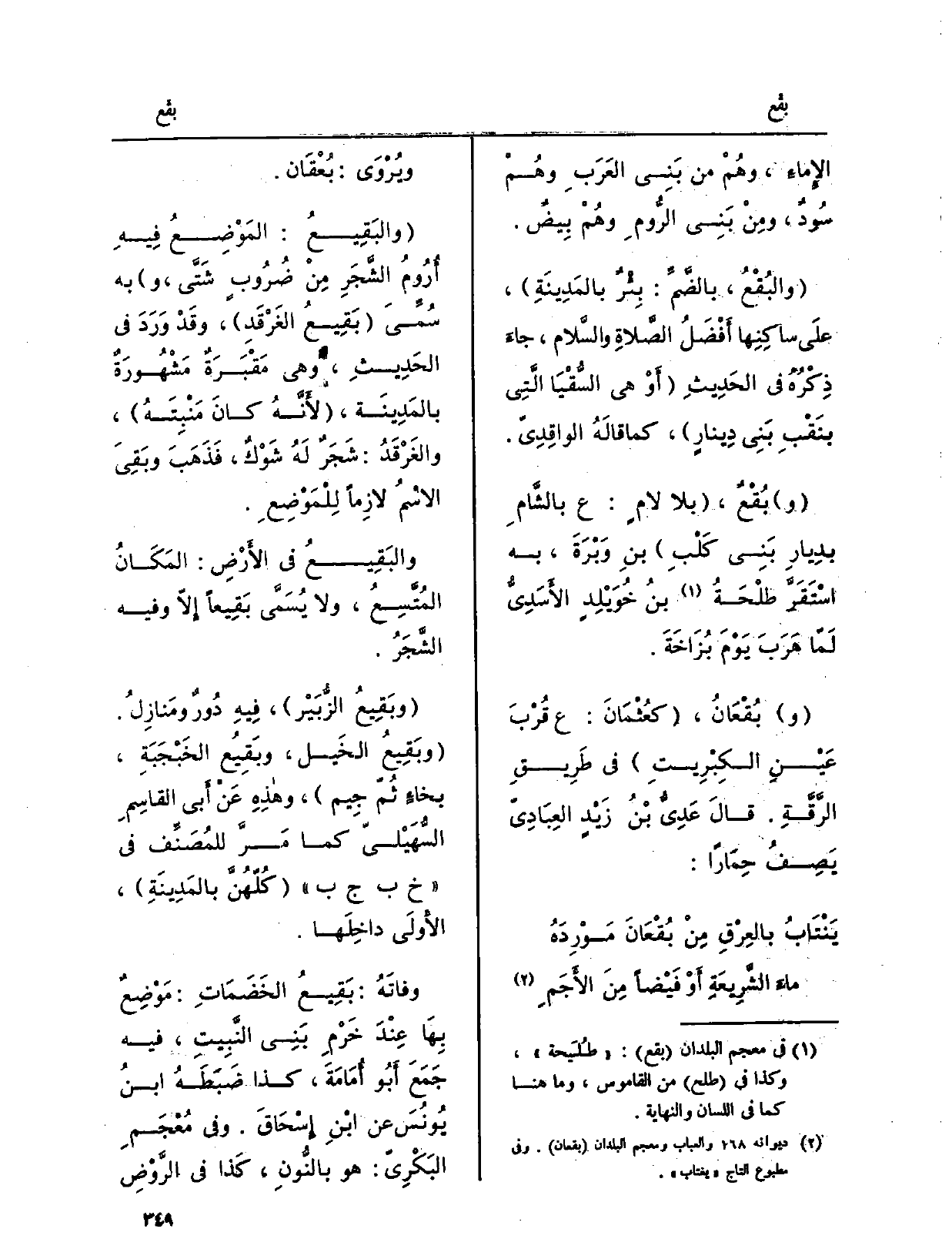 الإِماءِ، وهُمْ من بَنِي العَرَبِ وهُمْ سُودٌ، ومِنْ بَنِي الرُّومِ وهُمْ بِيضٌ. والبُقْعُ، بالضَّمِّ: بِئْرٌ بالمَدِينَةِ، علَى ساكِنِها أَفْضَلُ الصَّلاةِ والسَّلام، جاءَ ذِكْرُهُ فِي الحَدِيثِ أَو هِيَ السُّقْيَا الَّتِي بنَقْبِ بَنِي دِينارٍ، كَمَا قالَهُ الْوَاقِدِيّ.