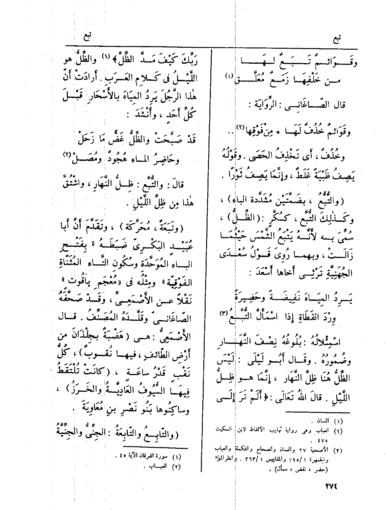 قالَ: والتُّبَّع: ظِلُّ النَّهَارِ، واشْتُقَّ هَذَا مِن ظِلِّ اللَّيْلِ.