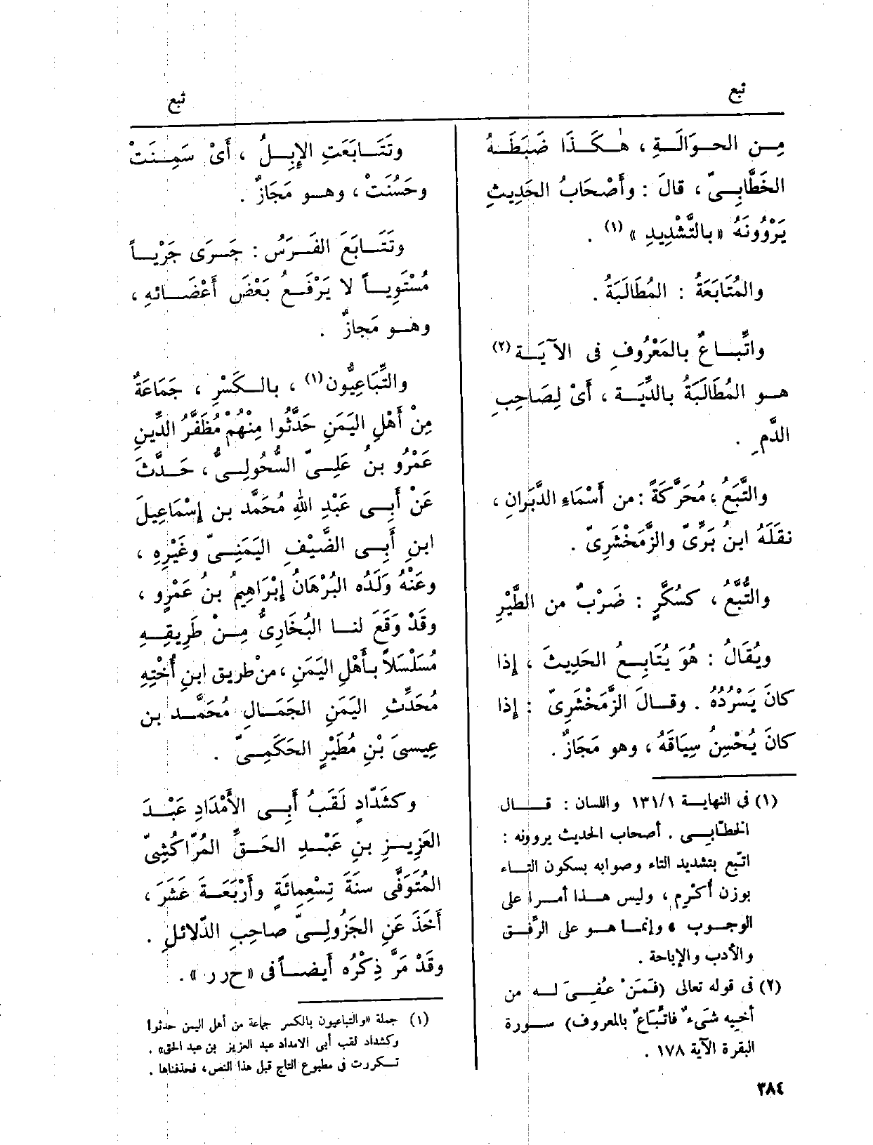 والمُتَابَعَةُ: المُطَالَبَةُ. وإتِّباعٌ بالمَعْرُوفِ فِي الآيَة هُوَ المُطَالَبَةُ بالدِّيَة، أَيْ لِصَاحِبِ الدَّمِ.