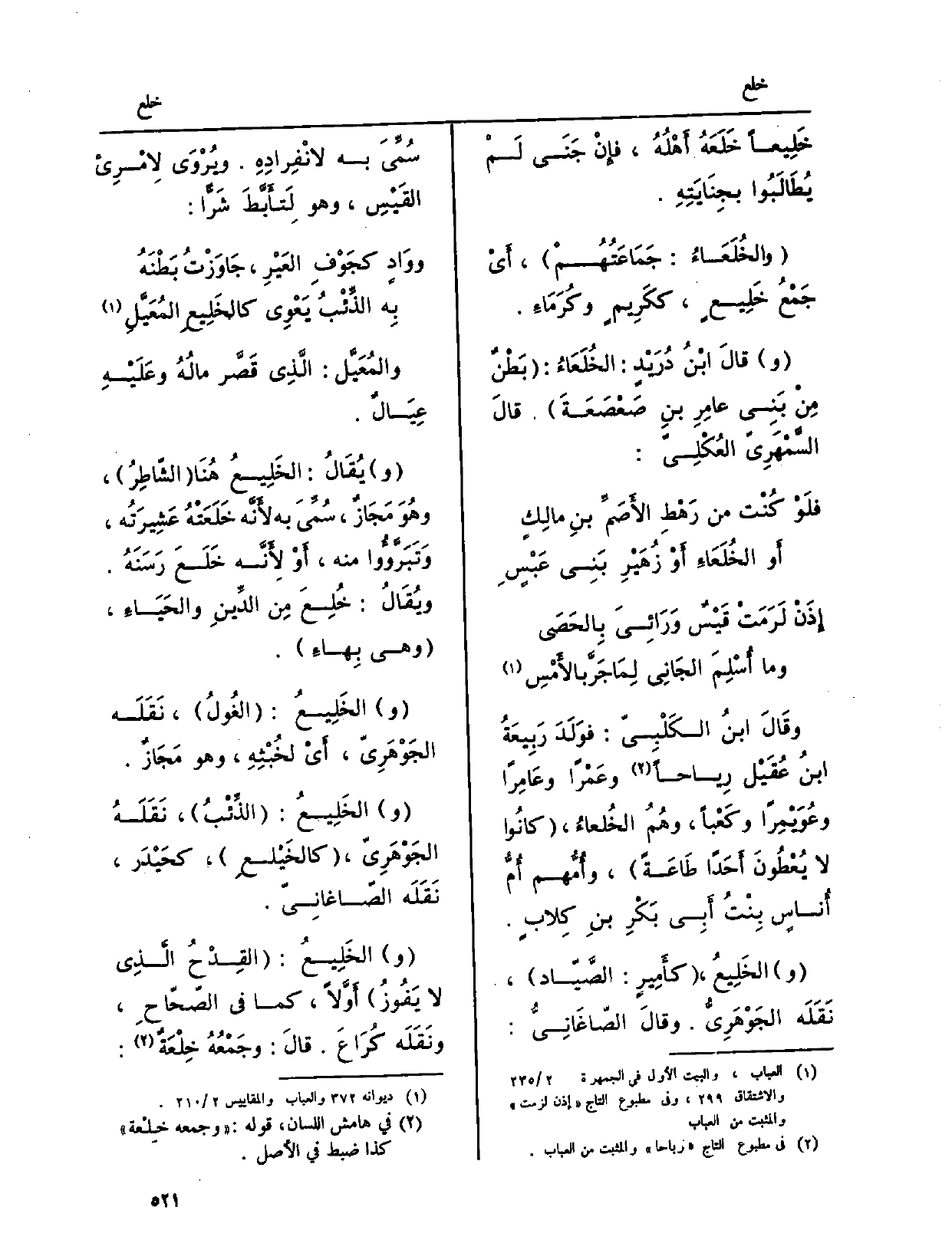 وقَالَ ابنُ الكَلْبِيّ: فوَلَدَ رَبِيعَةُ ابنُ عُقَيْل رِياحاً وعَمْراً وعَامِراً وعُوَيْمِراً وكَعْباً، وهُمُ الخُلعاءُ، كانُوا لَا يُعْطُونَ أَحَداً طَاعَةً، واُمُّهم أُمُّ أُناسٍ بِنْتُ أَبِي بَكْرِ بنِ كِلابٍ. والخَلِيعُ، كأَمِيرٍ: الصَّيّاد، نَقَلَه الجَوْهَرِيُّ. وقالَ الصّاغَانِيُّ: سُمِّيَ بِهِ لانْفِرادِهِ. ويُرْوَى لامْرِئ القَيْسِ، وَهُوَ لَتأَبَّطَ شَرّاً: