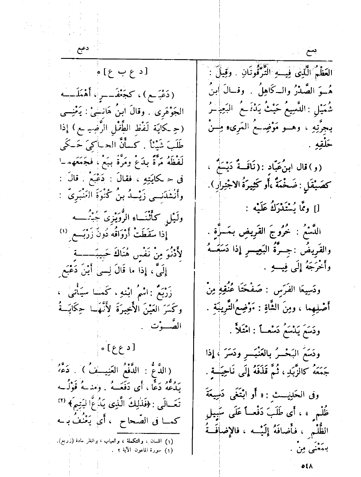 وَفِي الحَدِيثِ: أَو ابْتَغَى دَسِيعَةَ ظُلْمٍ، أَي طَلَبَ دَفْعاً عَلَى سَبِيلِ الظُّلْمِ، فأَضافَهُ إِلَيْه، فالإِضافَةُ بمَعْنَى مِنْ.