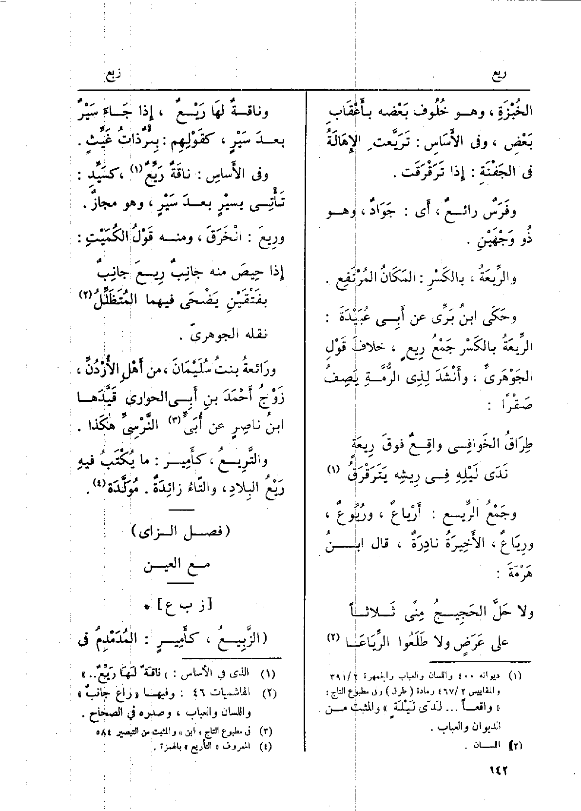 وجَمعُ الرِّيع:} أَرْيَاعٌ، {ورُيوع،} ورِياعٌ، الأخيرةُ نادِرَةٌ، قَالَ ابنُ هَرْمَةَ: