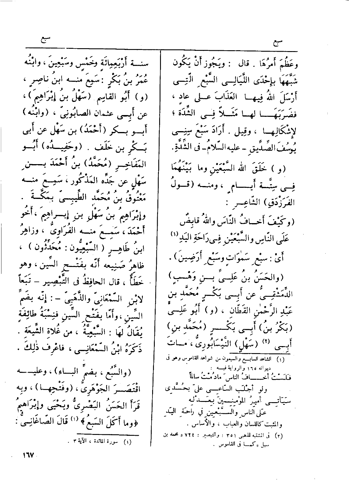وحَفيدُه أَبُو المَفاخِر مُحَمَّد بنُ أحمدَ بنِ سَهْلٍ عَن جَدِّهِ المَذكور، سَمِعَ مِنْهُ مَعْتُوقُ بنُ مُحَمَّد الطِّيبيّ بمَكَّة. وإبراهيمُ بنُ سَهْلِ بنِ إبراهيمَ، أَخُو أحمدَ، سَمِعَ مِنْهُ الفُرَاويُّ، وزاهِرُ بنُ طاهِرٍ السَّبْعِيُّون: مُحدِّثون، ظاهِرُ صَنيعُه أنّه بفَتحِ السِّين، وَهُوَ خطأٌ، قَالَ الحافظُ فِي التبصير تَبَعَاً لابنِ السَّمْعانيِّ والذَّهَبيّ: إنّه بضمِّ السِّين، وأمّا بفَتحِ السينِ فنِسبَةُ طائفَةٍ يُقَال لَهَا: السَّبْعِيَّة، من غُلاةِ الشِّيعَة. ذَكَرَه ابنُ السَّمْعانيّ، فاعْرِفْ ذَلِك. والسَّبُع، بضمِّ الْبَاء، وَعَلِيهِ اقْتَصرَ الجَوْهَرِيّ، وفَتحِها، وَبِه قَرَأَ الحسَنُ البَصْريُّ ويَحْيَى وإبراهيمُ وَمَا أَكَلَ السَّبعُ قَالَ الصَّاغانِيّ: