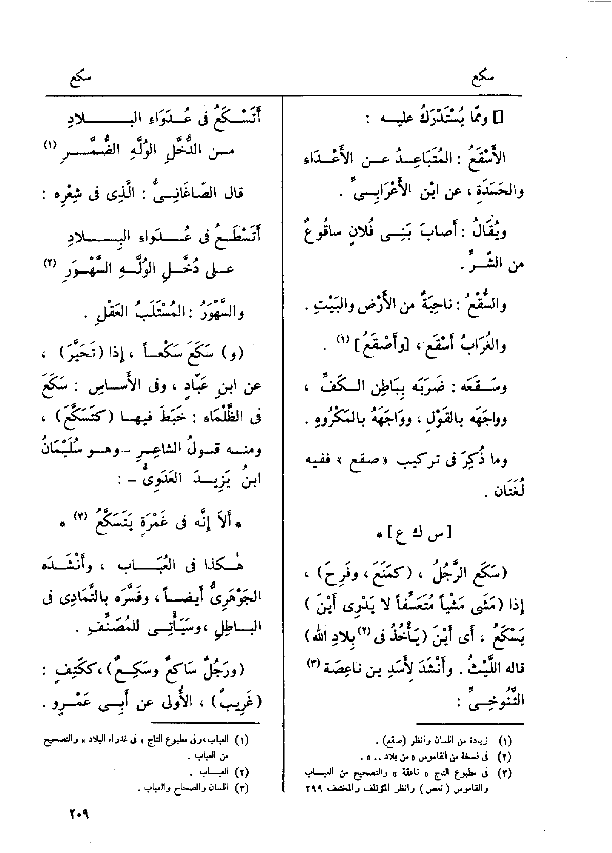 ورَجُلٌ ساكِعٌ وسَكِعٌ، ككَتِفٍ: غَريبٌ، الأُولى عَن أَبي عمروٍ.