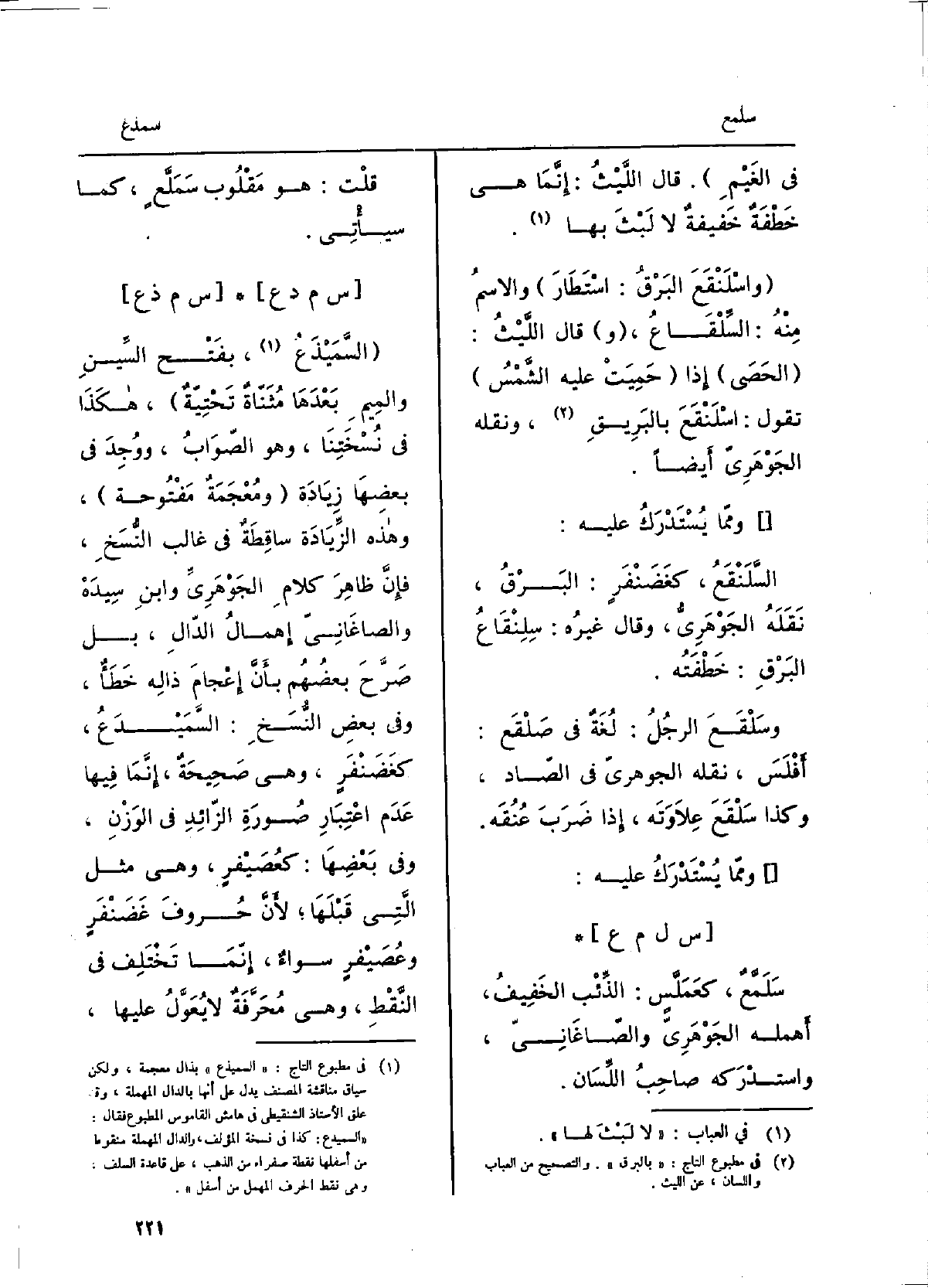 السَّمَيْذَعُ، بِفَتْح السِّين والميمِ بعدَها مُثَنَّاةٌ تَحْتِيَّةٌ، هَكَذَا فِي نُسخَتِنا، وَهُوَ الصّوابُ، ووُجِدَ فِي بعضِها زِيادَة، ومُعجَمَةٌ مَفتوحَةٌ، وَهَذِه الزِّيادَةُ ساقِطَةٌ فِي غَالب النُّسَخِ، فإنَّ ظاهِرَ كلامِ الجَوْهَرِيّ وابنِ سِيدَه والصَّاغانِيّ إهمالُ الدَّالِ، بل صَرَّحَ بعضُهُم بأَنَّ إعجامَ ذالِه خَطَأٌ، وَفِي بعضِ النُّسَخِ: السَّمَيْدَعُ، كغَضَنْفَرٍ، وَهِي صحيحةٌ، إنَّما فِيهَا عدم اعْتِبَار صُورَة الزَّائِدِ فِي الوَزْنِ، وَفِي بعضِها: كعُصَيْفِرٍ، وَهِي مثل الَّتِي قبلَها، لأَنَّ حروفَ غَضَنْفَرٍ وعُصَيْفرٍ سواءٌ، إنَّما تختلِفُ فِي النَّقْطِ، وَهِي مُحَرَّفَةٌ لَا يُعَوَّلُ عَلَيْهَا،